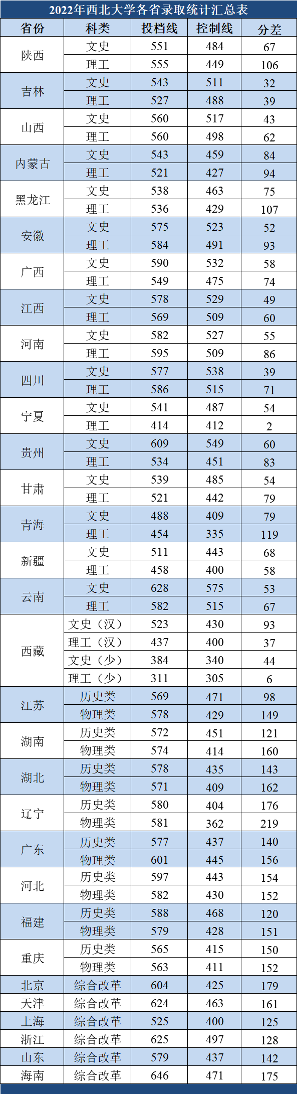 西北大學(xué)2022年各省錄取分?jǐn)?shù)線