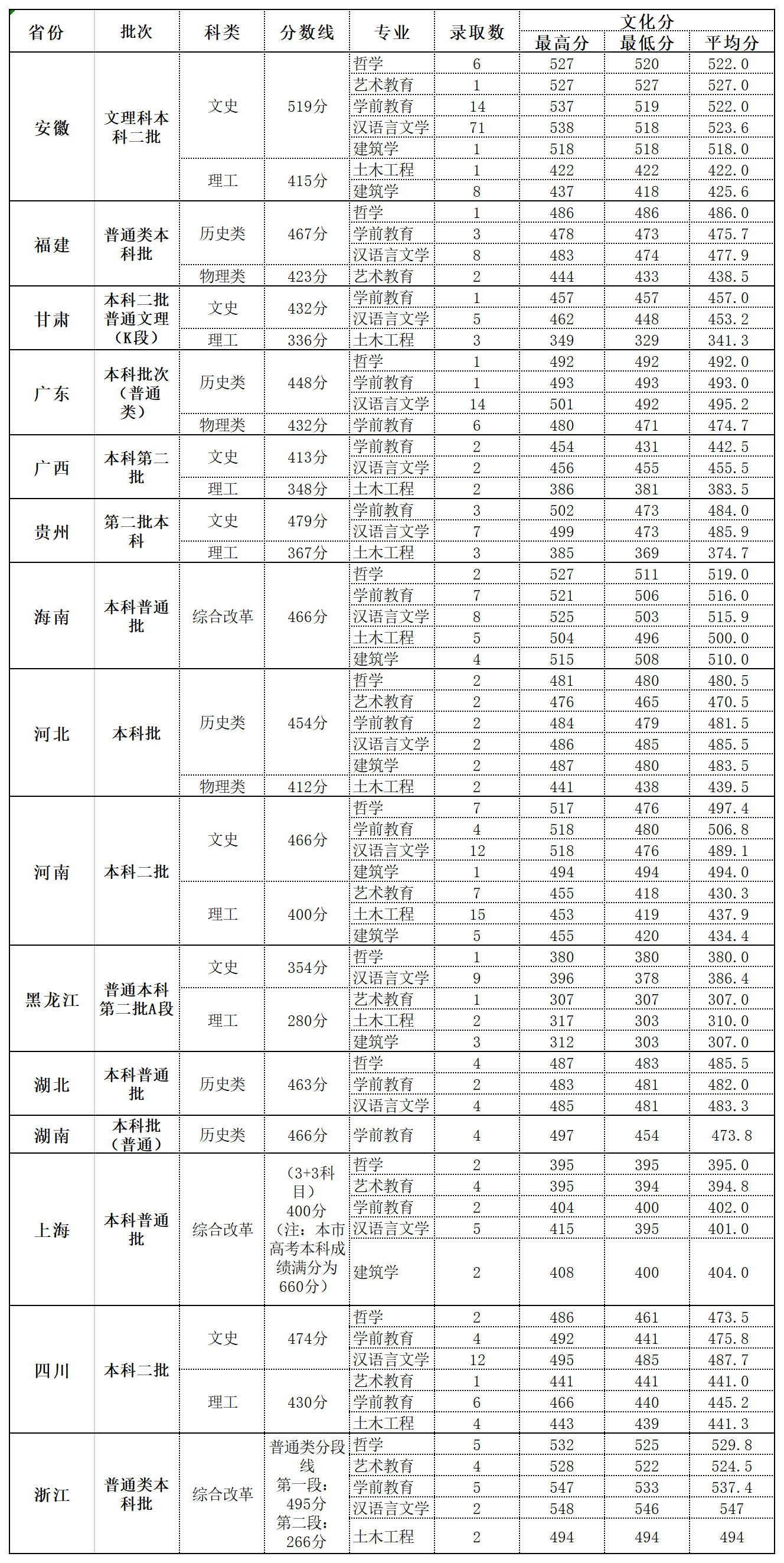 貴州(本科二批) 文科 490 33180 471