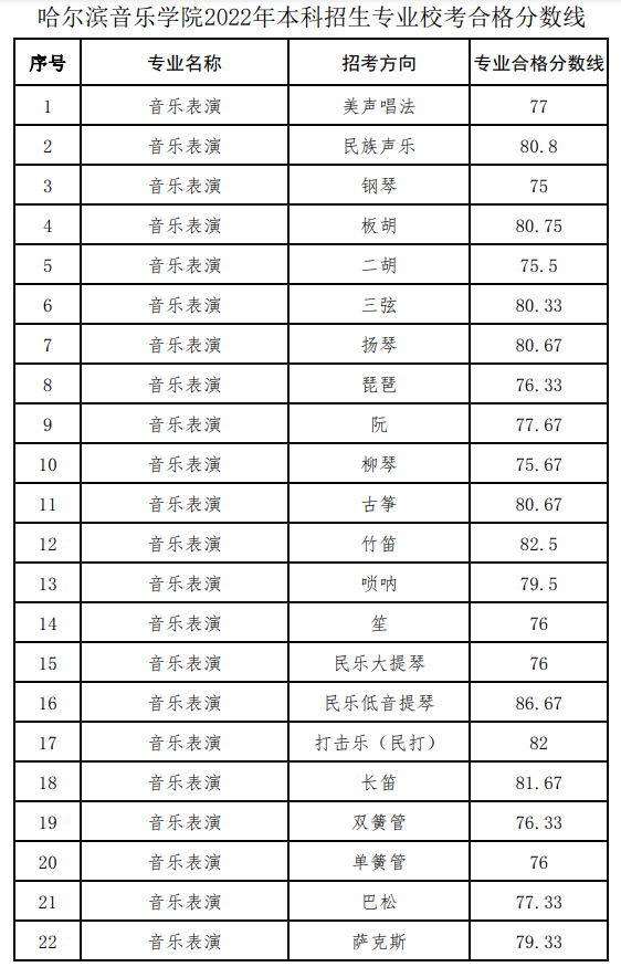 2022年哈爾濱音樂(lè)學(xué)院錄取分?jǐn)?shù)線