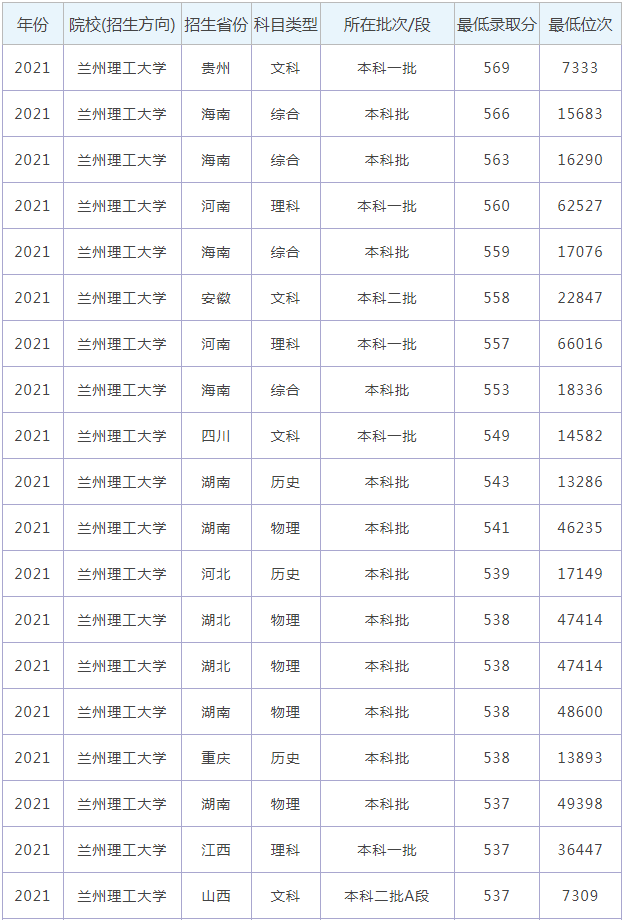 想要報(bào)考蘭州理工大學(xué)的同學(xué),都比較關(guān)注蘭州理工大學(xué)今年的錄取分?jǐn)?shù)線,那么,高考多少分可以上蘭州理工大學(xué)呢?蘭州理工大學(xué)歷年最低錄取分?jǐn)?shù)線是多少?下面為大家整理了蘭州理工大學(xué)錄取分?jǐn)?shù)線,希望對(duì)大家有所幫助,僅供參考。![]() 蘭州理工大學(xué)錄取分?jǐn)?shù)線 ![]() ![]() 蘭州理工大學(xué)是公辦還是民辦大學(xué)? 根據(jù)全國(guó)高等學(xué)校信息可知,蘭州理工大學(xué)是公辦大學(xué)。通常來(lái)說(shuō),公辦大學(xué)學(xué)費(fèi)便宜,民辦大學(xué)學(xué)費(fèi)較貴。 ![]() 蘭州理工大學(xué)簡(jiǎn)介 蘭州理工大學(xué)(Lanzhou University of Technology)簡(jiǎn)稱''蘭理工'',坐落于甘肅省會(huì)蘭州,是中華人民共和國(guó)教育部、國(guó)家國(guó)防科技工業(yè)局與甘肅省人民政府共建高校,國(guó)家“中西部高校基礎(chǔ)能力建設(shè)工程”重點(diǎn)建設(shè)大學(xué),教育部“卓越工程師教育培養(yǎng)計(jì)劃”、“新工科研究與實(shí)踐項(xiàng)目”及“國(guó)家大學(xué)生創(chuàng)新性實(shí)驗(yàn)計(jì)劃”入選高校,中國(guó)政府獎(jiǎng)學(xué)金來(lái)華留學(xué)生接收院校,全國(guó)畢業(yè)生就業(yè)典型經(jīng)驗(yàn)高校,全國(guó)首批深化創(chuàng)新創(chuàng)業(yè)教育改革示范高校,中國(guó)人民解放軍后備軍官選拔培養(yǎng)基地,CDIO工程教育聯(lián)盟成員單位,設(shè)有研究生院和國(guó)家大學(xué)科技園,東南大學(xué)對(duì)口支援高校。 學(xué)校前身是1919年的甘肅省立工藝學(xué)校;1958年,合并組建蘭州工學(xué)院、甘肅交通大學(xué)定名為甘肅工業(yè)大學(xué);1965年,學(xué)校劃歸第一機(jī)械工業(yè)部,將東北重型機(jī)械學(xué)院和北京機(jī)械學(xué)院的水力機(jī)械、化工機(jī)械、石油礦場(chǎng)機(jī)械和焊接工藝及設(shè)備專業(yè)全部遷入,并從湖南大學(xué)、合肥工業(yè)大學(xué)抽調(diào)一批教師來(lái)校工作;1998年,轉(zhuǎn)制為“中央與地方共建,以地方管理為主”的院校;2003年,正式更名為蘭州理工大學(xué)。 通過(guò)對(duì)蘭州理工大學(xué)錄取分?jǐn)?shù)線的了解,大家大概知道了高考多少分可以上蘭州理工大學(xué),以上數(shù)據(jù)源于網(wǎng)絡(luò),僅供參考,大家如果想要了解其他大學(xué)錄取分?jǐn)?shù)線、大學(xué)簡(jiǎn)介、大學(xué)排行榜、專業(yè)選擇等內(nèi)容,請(qǐng)點(diǎn)擊訪問:大學(xué)欄目。 推薦閱讀: 新疆大學(xué)錄取分?jǐn)?shù)線 西藏大學(xué)錄取分?jǐn)?shù)線 喀什大學(xué)錄取分?jǐn)?shù)線 石河子大學(xué)錄取分?jǐn)?shù)線 新疆農(nóng)業(yè)大學(xué)錄取分?jǐn)?shù)線 高考多少分可以上塔里木大學(xué) 新疆師范大學(xué)錄取分?jǐn)?shù)線 高考多少分可以上新疆醫(yī)科大學(xué)? 西藏民族大學(xué)錄取分?jǐn)?shù)線 |