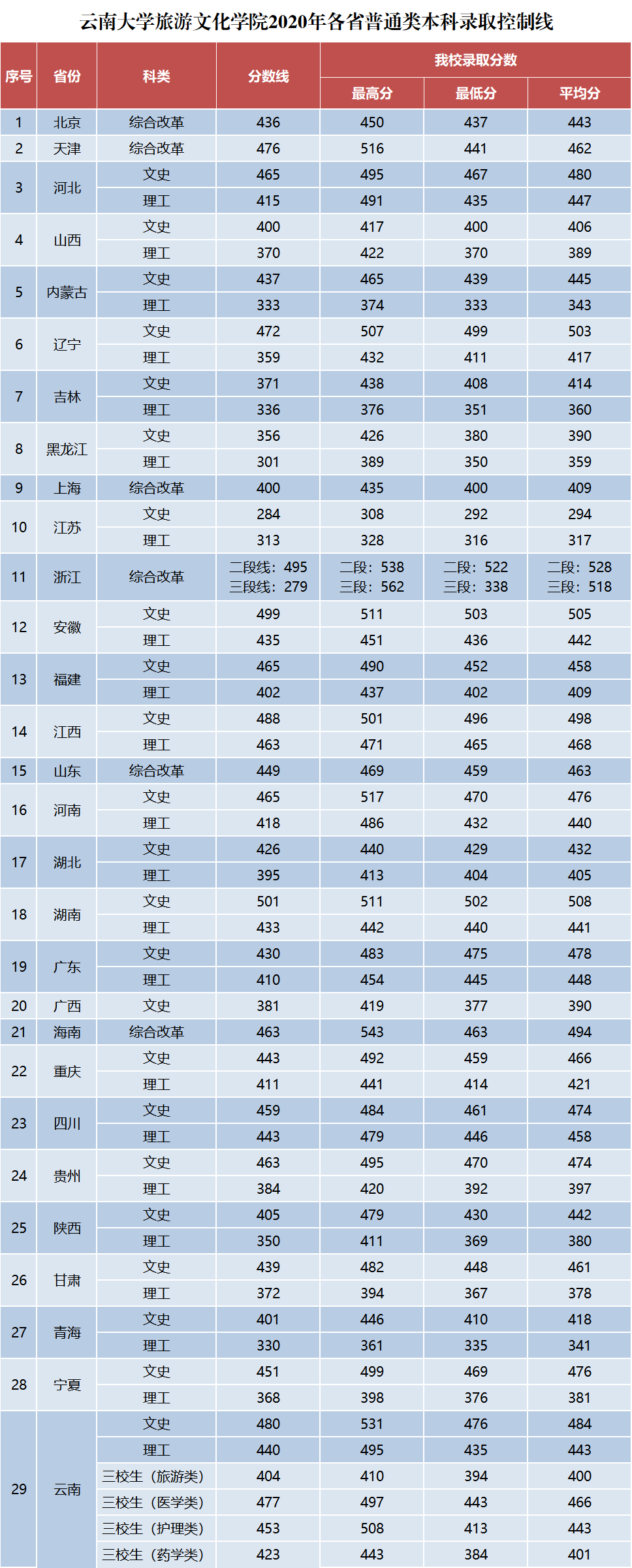 想要報考麗江文化旅游學(xué)院的同學(xué),都比較關(guān)注麗江文化旅游學(xué)院今年的錄取分?jǐn)?shù)線,那么,高考多少分可以上麗江文化旅游學(xué)院呢?麗江文化旅游學(xué)院歷年最低錄取分?jǐn)?shù)線是多少?下面為大家整理了麗江文化旅游學(xué)院錄取分?jǐn)?shù)線,希望對大家有所幫助,僅供參考。![]() 2020麗江文化旅游學(xué)院錄取分?jǐn)?shù)線 ![]() ![]() 麗江文化旅游學(xué)院是幾本? 麗江文化旅游學(xué)院在云南和全國基本是本科二批招生,所以我們通常認(rèn)為麗江文化旅游學(xué)院是二本大學(xué)。(2017年起云南省合并原本科二批和本科三批為新的本科二批,保留本科一批,取消本科三批) ![]() 麗江文化旅游學(xué)院簡介 麗江文化旅游學(xué)院(Lijiang Culture and Tourism College ),簡稱“文化旅游學(xué)院”,坐落在云南省麗江市,是一所全日制民辦普通本科高等學(xué)校。 麗江文化旅游學(xué)院前身為云南大學(xué)旅游文化學(xué)院,由云南大學(xué)與云南大博文化投資有限公司于2001年在麗江舉辦,2002年開始招生,2004年經(jīng)國家教育部首批確認(rèn)為獨立學(xué)院。2021年,經(jīng)教育部審批,云南大學(xué)旅游文化學(xué)院正式轉(zhuǎn)設(shè)為民辦普通本科高校麗江文化旅游學(xué)院。 通過對麗江文化旅游學(xué)院錄取分?jǐn)?shù)線的了解,大家大概知道了高考多少分可以上麗江文化旅游學(xué)院,以上數(shù)據(jù)源于網(wǎng)絡(luò),僅供參考,大家如果想要了解其他大學(xué)錄取分?jǐn)?shù)線、大學(xué)簡介、大學(xué)排行榜、專業(yè)選擇等內(nèi)容,請點擊訪問:大學(xué)欄目。 推薦閱讀: 新疆大學(xué)錄取分?jǐn)?shù)線 西藏大學(xué)錄取分?jǐn)?shù)線 喀什大學(xué)錄取分?jǐn)?shù)線 石河子大學(xué)錄取分?jǐn)?shù)線 蘭州大學(xué)錄取分?jǐn)?shù)線 高考多少分可以上寧夏大學(xué)? 西北師范大學(xué)錄取分?jǐn)?shù)線 |