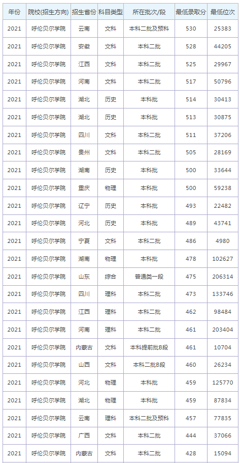 想要報(bào)考呼倫貝爾學(xué)院的同學(xué),都比較關(guān)注呼倫貝爾學(xué)院2022年的錄取分?jǐn)?shù)線,那么,高考多少分可以上呼倫貝爾學(xué)院呢?鄭州升達(dá)經(jīng)貿(mào)管理學(xué)院歷年最低錄取分?jǐn)?shù)線是多少?下面為大家整理了呼倫貝爾學(xué)院錄取分?jǐn)?shù)線2022是多少分(含2021-2022歷年),希望對大家有所幫助,僅供參考。![]() 呼倫貝爾學(xué)院錄取分?jǐn)?shù)線2022是多少分? 截止到目前,呼倫貝爾學(xué)院2022年錄取分?jǐn)?shù)線還未公布,如果需要2022年呼倫貝爾學(xué)院分?jǐn)?shù)線的同學(xué),不妨參考2021年呼倫貝爾學(xué)院錄取分?jǐn)?shù)線和呼倫貝爾學(xué)院歷年錄取分?jǐn)?shù)線,希望對大家有所幫助,如有不同,請以鄭州升達(dá)經(jīng)貿(mào)管理學(xué)院官網(wǎng)最新公布的信息為準(zhǔn)。 2021呼倫貝爾學(xué)院錄取分?jǐn)?shù)線 ![]() ![]() 呼倫貝爾學(xué)院是幾本? 呼倫貝爾學(xué)院在內(nèi)蒙古和全國基本是本科二批招生,所以我們通常認(rèn)為呼倫貝爾學(xué)院是二本大學(xué)。 ![]() 呼倫貝爾學(xué)院簡介 呼倫貝爾學(xué)院位于內(nèi)蒙古自治區(qū)東部,是呼倫貝爾市唯一一所全日制綜合性普通高等學(xué)校,被內(nèi)蒙古自治區(qū)教育廳、發(fā)改委、財(cái)政廳列為轉(zhuǎn)型發(fā)展試點(diǎn)高校,入選國家“十三五”應(yīng)用型本科產(chǎn)教融合發(fā)展工程百所高校、教育部首批新工科研究與實(shí)踐項(xiàng)目。 學(xué)校始建于1958年的呼倫貝爾大學(xué),1959年與暫設(shè)在扎蘭屯師范學(xué)校的“師專班”合并成立呼倫貝爾師范??茖W(xué)校,1962年下馬,1977年恢復(fù)本??普猩?。1992年,呼倫貝爾盟行政公署決定海拉爾師范??茖W(xué)校、呼倫貝爾盟教育學(xué)院、呼倫貝爾盟管理干部學(xué)院、內(nèi)蒙古電大呼倫貝爾盟分校4所專科學(xué)校合并成立呼倫貝爾大學(xué);1997年,原國家教委批準(zhǔn)4校合并組建??茖哟蔚暮魝愗悹枌W(xué)院。2000年,呼倫貝爾盟商業(yè)學(xué)校、呼倫貝爾盟城建職工中專學(xué)校、海拉爾蒙古族師范學(xué)校并入;2003年,經(jīng)教育部批準(zhǔn)晉升為本科高校,同年;內(nèi)蒙古工程技術(shù)學(xué)校并入。 通過對呼倫貝爾學(xué)院錄取分?jǐn)?shù)線的了解,大家大概知道了高考多少分可以上呼倫貝爾學(xué)院,以上數(shù)據(jù)源于網(wǎng)絡(luò),僅供參考,大家如果想要了解其他大學(xué)錄取分?jǐn)?shù)線、大學(xué)簡介、大學(xué)排行榜、專業(yè)選擇等內(nèi)容,請點(diǎn)擊訪問:大學(xué)欄目。 推薦閱讀: 北京大學(xué)錄取分?jǐn)?shù)線 清華大學(xué)錄取分?jǐn)?shù)線 中國科學(xué)技術(shù)大學(xué)錄取分?jǐn)?shù)線 復(fù)旦大學(xué)錄取分?jǐn)?shù)線 南開大學(xué)錄取分?jǐn)?shù)線 同濟(jì)大學(xué)錄取分?jǐn)?shù)線 |