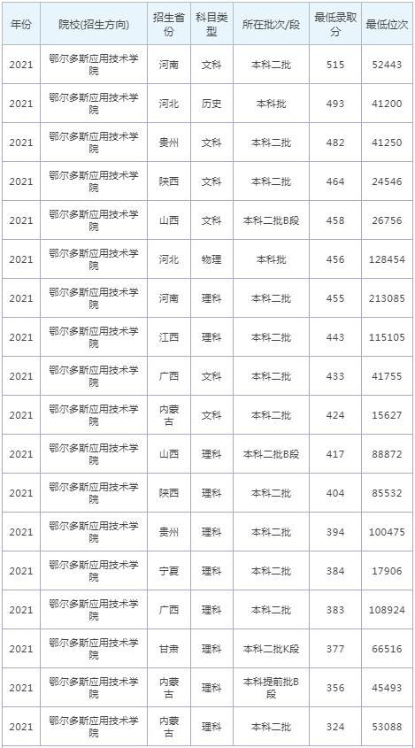 想要報考鄂爾多斯應(yīng)用技術(shù)學(xué)院的同學(xué),都比較關(guān)注鄂爾多斯應(yīng)用技術(shù)學(xué)院2022年的錄取分數(shù)線,那么,高考多少分可以上鄂爾多斯應(yīng)用技術(shù)學(xué)院呢?鄭州升達經(jīng)貿(mào)管理學(xué)院歷年最低錄取分數(shù)線是多少?下面為大家整理了鄂爾多斯應(yīng)用技術(shù)學(xué)院錄取分數(shù)線2022是多少分(含2021-2022歷年),希望對大家有所幫助,僅供參考。![]() 鄂爾多斯應(yīng)用技術(shù)學(xué)院錄取分數(shù)線2022是多少分? 截止到目前,鄂爾多斯應(yīng)用技術(shù)學(xué)院2022年錄取分數(shù)線還未公布,如果需要2022年鄂爾多斯應(yīng)用技術(shù)學(xué)院分數(shù)線的同學(xué),不妨參考2021年鄂爾多斯應(yīng)用技術(shù)學(xué)院錄取分數(shù)線和鄂爾多斯應(yīng)用技術(shù)學(xué)院歷年錄取分數(shù)線,希望對大家有所幫助,如有不同,請以鄭州升達經(jīng)貿(mào)管理學(xué)院官網(wǎng)最新公布的信息為準。 2021鄂爾多斯應(yīng)用技術(shù)學(xué)院錄取分數(shù)線 ![]() ![]() 鄂爾多斯應(yīng)用技術(shù)學(xué)院是公辦還是民辦大學(xué)? 根據(jù)全國高等學(xué)校信息可知,鄂爾多斯應(yīng)用技術(shù)學(xué)院是公辦大學(xué)。通常來說,公辦大學(xué)社會認可度高,各專業(yè)學(xué)費較便宜,民辦大學(xué)各專業(yè)收費較貴。 ![]() 鄂爾多斯應(yīng)用技術(shù)學(xué)院簡介 鄂爾多斯應(yīng)用技術(shù)學(xué)院(ORDOS INSITITUTE OF TECHNOLOGY),是內(nèi)蒙古自治區(qū)主管的一所全日制普通本科院校。 學(xué)校前身是2008年7月創(chuàng)建的內(nèi)蒙古大學(xué)鄂爾多斯學(xué)院、2007年創(chuàng)辦的內(nèi)蒙古工業(yè)大學(xué)礦業(yè)學(xué)院和1959年始建的內(nèi)蒙古醫(yī)科大學(xué)鄂爾多斯學(xué)院;2015年4月,三校合并為鄂爾多斯應(yīng)用技術(shù)學(xué)院。 通過對鄂爾多斯應(yīng)用技術(shù)學(xué)院錄取分數(shù)線的了解,大家大概知道了高考多少分可以上鄂爾多斯應(yīng)用技術(shù)學(xué)院,以上數(shù)據(jù)源于網(wǎng)絡(luò),僅供參考,大家如果想要了解其他大學(xué)錄取分數(shù)線、大學(xué)簡介、大學(xué)排行榜、專業(yè)選擇等內(nèi)容,請點擊訪問:大學(xué)欄目。 推薦閱讀: 北京大學(xué)錄取分數(shù)線 清華大學(xué)錄取分數(shù)線 中國科學(xué)技術(shù)大學(xué)錄取分數(shù)線 復(fù)旦大學(xué)錄取分數(shù)線 南開大學(xué)錄取分數(shù)線 同濟大學(xué)錄取分數(shù)線 |