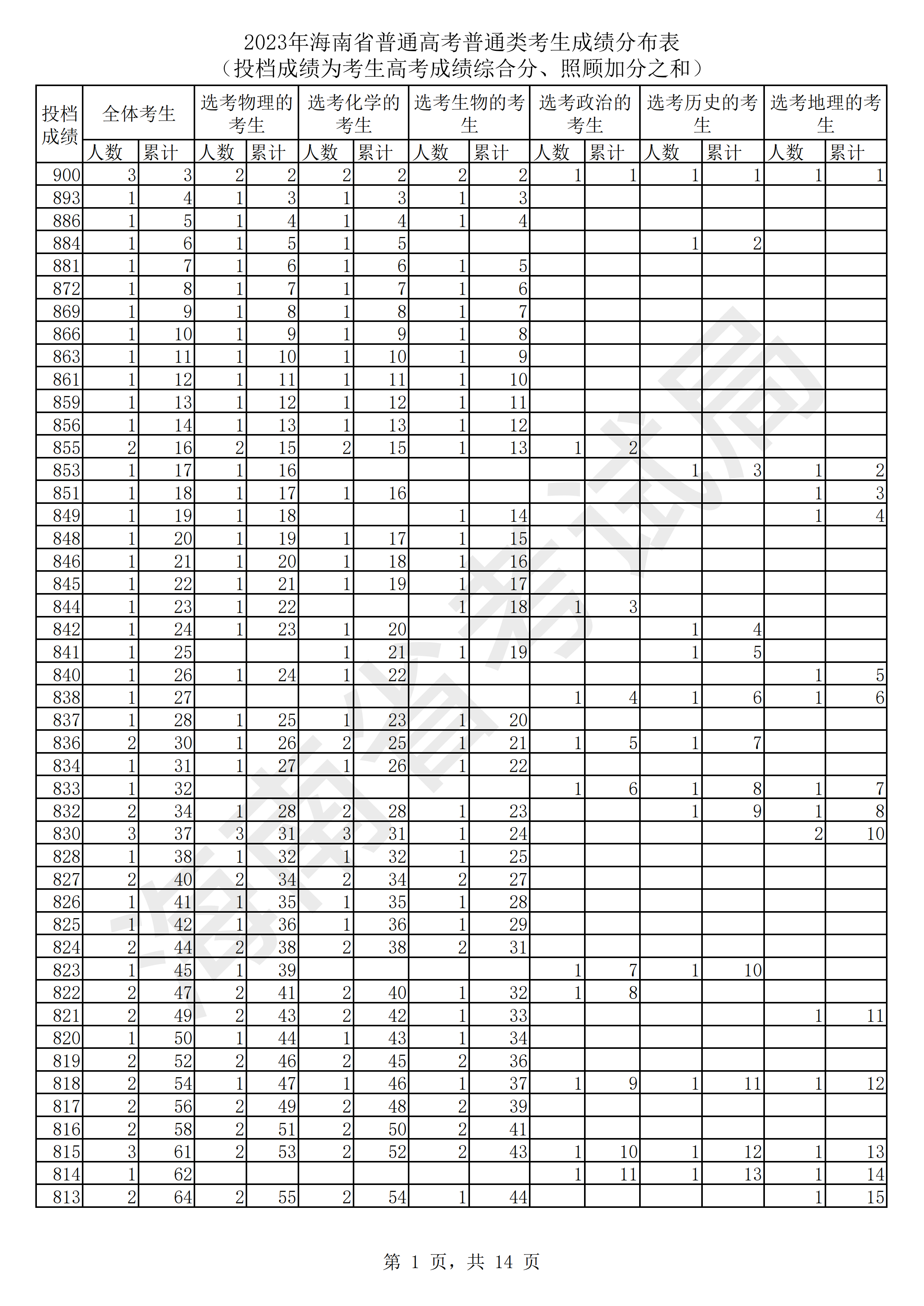 高考一分一段表可以讓大家弄清楚高考分?jǐn)?shù)位次,下面為大家準(zhǔn)備了2023年海南高考一分一段表,通過對(duì)照海南高考一分一段表,考生可以清楚地查詢到自己高考的排名情況,如需進(jìn)一步了解,請(qǐng)到官方網(wǎng)站查詢,本文僅供參考。![]() 2023年海南高考一分一段表