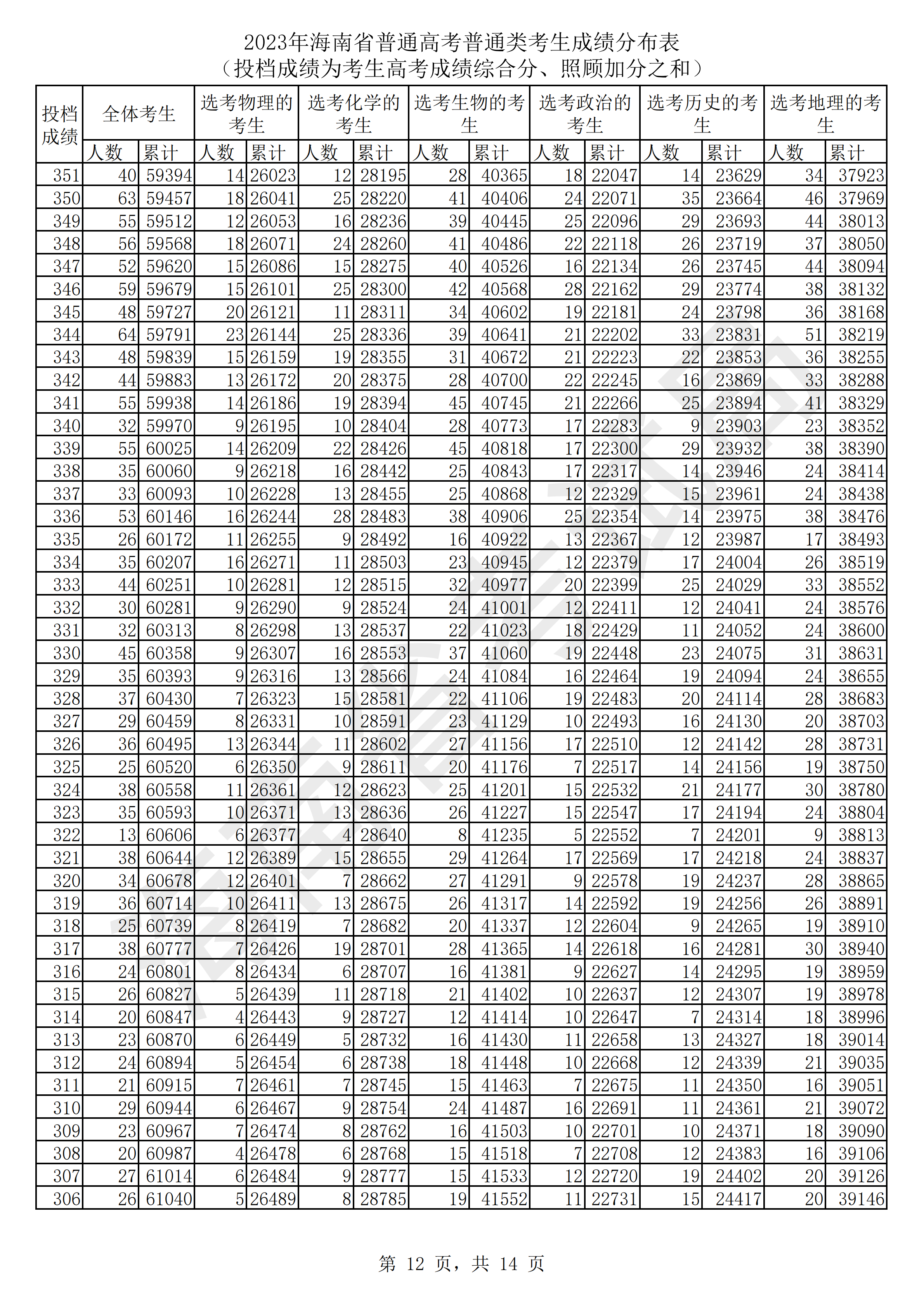 2023年海南高考一分一段表_海南高考分?jǐn)?shù)位次排名查詢表(12)