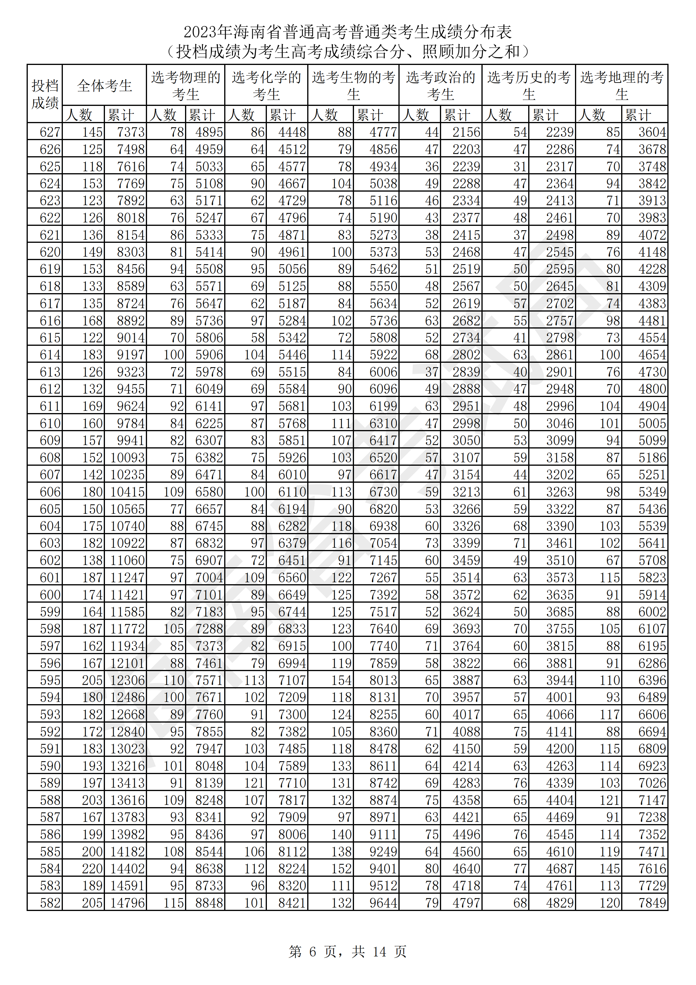 2023年海南高考一分一段表_海南高考分?jǐn)?shù)位次排名查詢表(6)