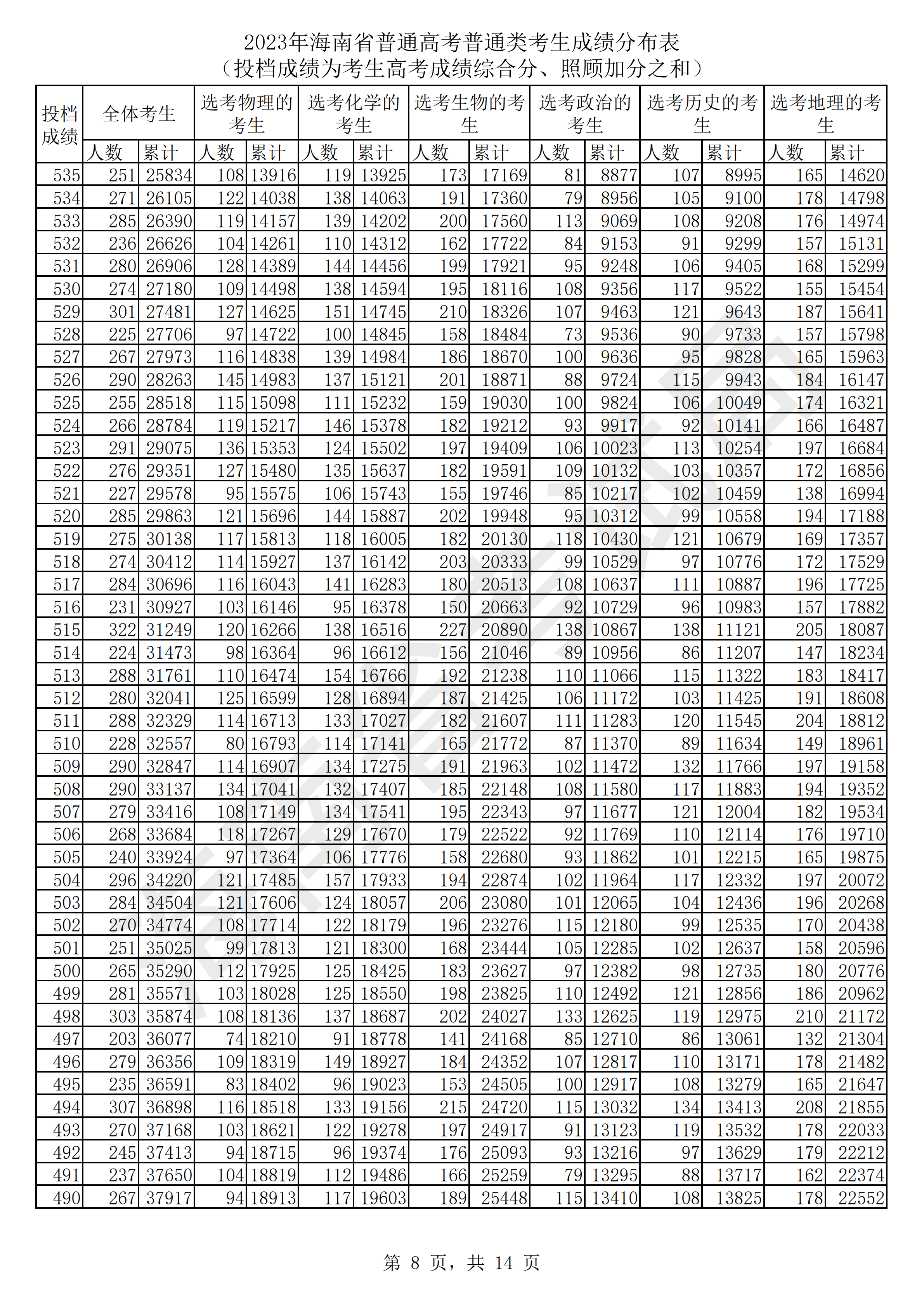 2023年海南高考一分一段表_海南高考分?jǐn)?shù)位次排名查詢表(8)
