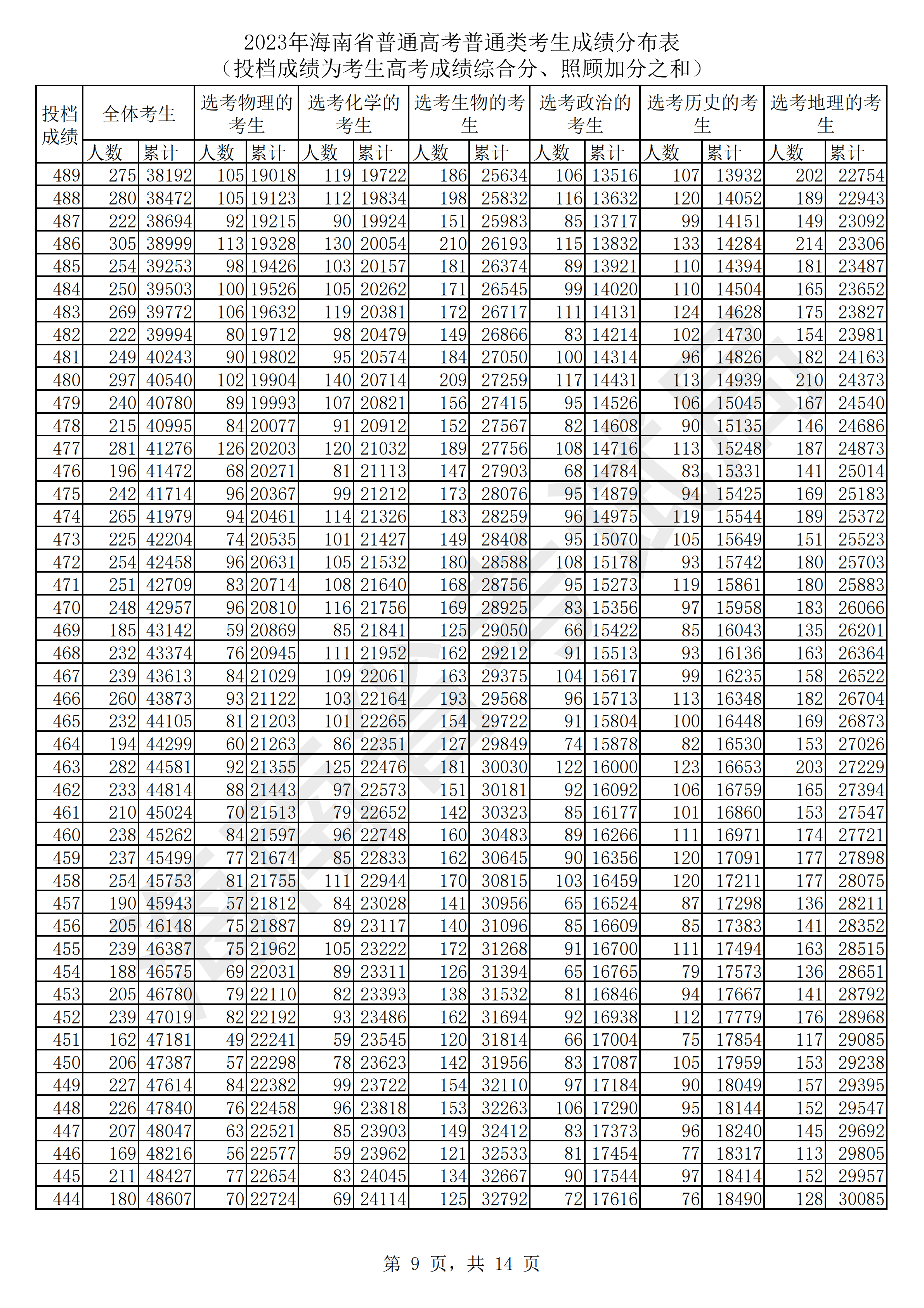 2023年海南高考一分一段表_海南高考分?jǐn)?shù)位次排名查詢表(9)