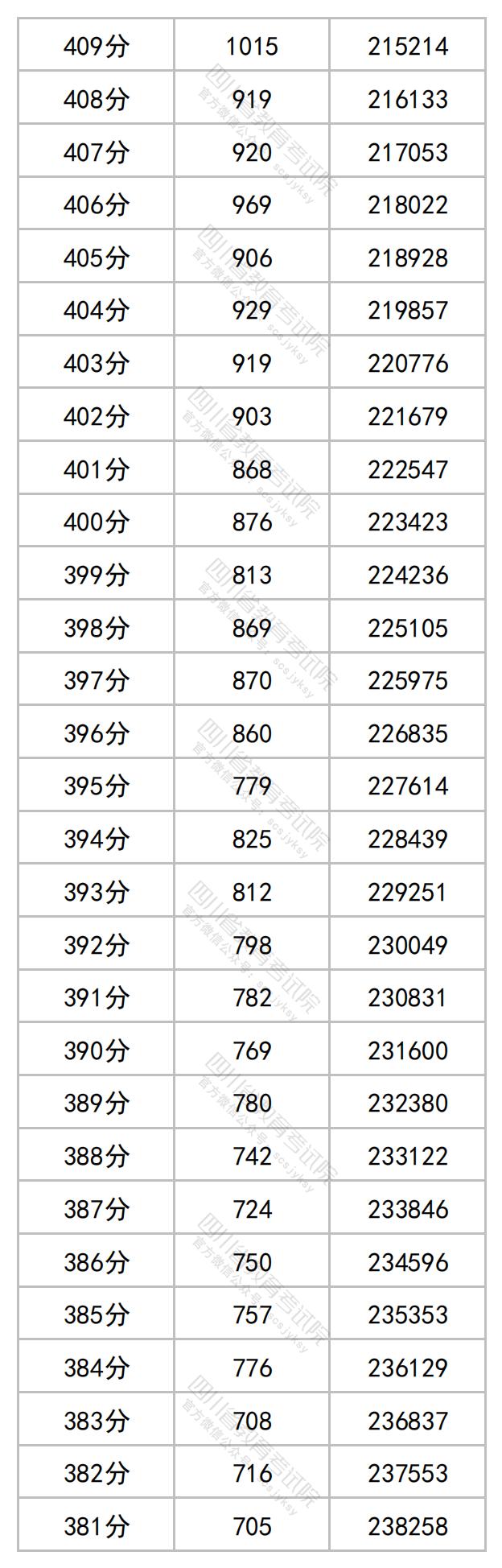 2023年四川高考一分一段表_四川高考分數(shù)位次排名查詢表(11)