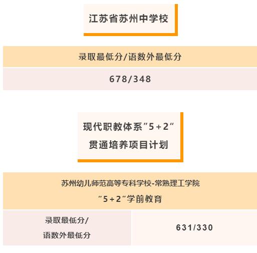相信有不少考生都想盡早知道2023年蘇州市中考錄取分?jǐn)?shù)線(xiàn)是多少,為了讓考生能第一時(shí)間獲取到2023年蘇州市中考錄取分?jǐn)?shù)線(xiàn)的相關(guān)內(nèi)容,特整理本文,希望可以幫助到大家,數(shù)據(jù)源于網(wǎng)絡(luò),僅供參考。![]() 2023年蘇州市中考錄取分?jǐn)?shù)線(xiàn) 鑒于目前還不清楚2023年蘇州市中考錄取分?jǐn)?shù)線(xiàn)是多少,我們?yōu)榇蠹艺沓隽?022年蘇州中考錄取分?jǐn)?shù)線(xiàn),等到官方公布后,我們會(huì)將2023年蘇州市中考錄取分?jǐn)?shù)線(xiàn)相關(guān)內(nèi)容更新到這里,為大家提供參考。 2022年蘇州中考分?jǐn)?shù)線(xiàn)是多少? 江蘇蘇州太倉(cāng)市各類(lèi)高級(jí)中等學(xué)校錄取分?jǐn)?shù)線(xiàn) 現(xiàn)代職教“5+2”“3+4”本科項(xiàng)目 1.蘇州建設(shè)交通高等職業(yè)技術(shù)學(xué)校-蘇州城市學(xué)院“5+2”城市軌道車(chē)輛應(yīng)用技術(shù)投檔分?jǐn)?shù)線(xiàn)為553分、且文化總分需在503分及以上且語(yǔ)數(shù)外在305分及以上。 2.蘇州建設(shè)交通高等職業(yè)技術(shù)學(xué)校-蘇州城市學(xué)院“5+2”環(huán)境藝術(shù)設(shè)計(jì)投檔分?jǐn)?shù)線(xiàn)為554分、且文化總分需在504分及以上且語(yǔ)數(shù)外在297分及以上。 3.蘇州旅游與財(cái)經(jīng)高等職業(yè)技術(shù)學(xué)校-蘇州科技大學(xué)“3+4”物流服務(wù)與管理投檔分?jǐn)?shù)線(xiàn)為554分、且文化總分需在504分及以上且語(yǔ)數(shù)外在300分及以上。 第二批次 1.太倉(cāng)市華頓外國(guó)語(yǔ)學(xué)校投檔分?jǐn)?shù)線(xiàn)為540分。 2.江蘇省太倉(cāng)中等專(zhuān)業(yè)學(xué)校綜合高中(職教高考)班投檔分?jǐn)?shù)線(xiàn)為530分。 蘇州市姑蘇區(qū)、工業(yè)園區(qū)、高新區(qū)普通高中錄取分?jǐn)?shù)線(xiàn) 根據(jù)2022年蘇州市姑蘇區(qū)、工業(yè)園區(qū)、高新區(qū)普通高中招生計(jì)劃及普通高中自主招生最低控制分?jǐn)?shù)線(xiàn)劃線(xiàn)規(guī)則,自主招生最終控制線(xiàn)為 598分 凡自主招生綜合評(píng)價(jià)合格,中考成績(jī)達(dá)到姑蘇區(qū)、工業(yè)園區(qū)、高新區(qū)普通高中自主招生控制線(xiàn)的考生,自主招生學(xué)校將按公示名單先后順序,采用綜合排名優(yōu)先、考生自主選擇、按照計(jì)劃進(jìn)行錄取。 被蘇州中學(xué)“匡亞明”實(shí)驗(yàn)班預(yù)錄取的考生應(yīng)于6月29日12:00~6月30日12:00之間到學(xué)校報(bào)到。 被其他自主招生學(xué)校預(yù)錄取的考生(含省蘇州十中“國(guó)科大創(chuàng)新實(shí)驗(yàn)班”,省蘇州實(shí)驗(yàn)中學(xué)“中科創(chuàng)新實(shí)驗(yàn)班”“南大軟件工程實(shí)驗(yàn)班”,蘇大附中“費(fèi)孝通班”,省蘇州十中金閶校區(qū)“國(guó)科大創(chuàng)新實(shí)驗(yàn)班”,西安交大蘇州附屬中學(xué)“納米科學(xué)人才實(shí)驗(yàn)班”,星海實(shí)驗(yàn)中學(xué)“生命科學(xué)課程實(shí)驗(yàn)班”,南航蘇州附屬中學(xué)“飛行員課程基地班”),應(yīng)于7月1日17:00之前,根據(jù)相關(guān)學(xué)校通知到自主招生錄取學(xué)校報(bào)到,辦理錄取手續(xù)。 凡綜合排名較后而未被錄取的考生以及規(guī)定時(shí)間未到相關(guān)學(xué)校報(bào)到的考生,按照本人填報(bào)的中考志愿進(jìn)入志愿錄取流程。 注:姑蘇區(qū)普通高中即市教育局直屬高中。 蘇州外國(guó)語(yǔ)學(xué)校高中部錄取分?jǐn)?shù)線(xiàn) 創(chuàng)新班全免691分 強(qiáng)基班半免685分 高中國(guó)際班660分 蘇州太倉(cāng)市提前批中考錄取分?jǐn)?shù)線(xiàn) 江蘇省太倉(cāng)高級(jí)中學(xué)體育類(lèi)特長(zhǎng)生錄取分?jǐn)?shù)線(xiàn)為中考總分619分,學(xué)科類(lèi)特長(zhǎng)生錄取分?jǐn)?shù)線(xiàn)為中考總分619分,科技類(lèi)特長(zhǎng)生錄取分?jǐn)?shù)線(xiàn)為中考總分619分。江蘇省沙溪高級(jí)中學(xué)科技類(lèi)特長(zhǎng)生錄取分?jǐn)?shù)線(xiàn)為中考總分591分,且綜合分?jǐn)?shù)657.6分及以上;江蘇省沙溪高級(jí)中學(xué)音樂(lè)類(lèi)特長(zhǎng)生錄取分?jǐn)?shù)線(xiàn)為中考總分576分,且專(zhuān)業(yè)測(cè)試成績(jī)83.5分及以上;江蘇省沙溪高級(jí)中學(xué)美術(shù)類(lèi)特長(zhǎng)生錄取分?jǐn)?shù)線(xiàn)為中考總分563分,且綜合分?jǐn)?shù)631.3分及以上。 蘇州幼兒師范高等專(zhuān)科學(xué)校—常熟理工學(xué)院“5+2”學(xué)前教育錄取分?jǐn)?shù)線(xiàn)為620分,蘇州幼兒師范高等專(zhuān)科學(xué)校五年制學(xué)前教育錄取分?jǐn)?shù)線(xiàn)為597分。 蘇州昆山市中考錄取分?jǐn)?shù)線(xiàn) ![]() ![]() 蘇州相城區(qū)中招錄取分?jǐn)?shù)線(xiàn)(一) 01、蘇州中學(xué)相城實(shí)驗(yàn)項(xiàng)目 ![]() ![]() 03、師范教育類(lèi) ![]() 說(shuō)明:若考生中考總分等于錄取分?jǐn)?shù)線(xiàn)的總分時(shí),需要比對(duì)語(yǔ)數(shù)英成績(jī);若考生中考總分高于錄取分?jǐn)?shù)線(xiàn)的總分,則不需要比對(duì)語(yǔ)數(shù)英成績(jī),直接錄取。 蘇州相城區(qū)中招錄取分?jǐn)?shù)線(xiàn)(二) 01、四星級(jí)高中指標(biāo)生(全區(qū)最低分?jǐn)?shù)控制線(xiàn)601分) ![]() 02、四星級(jí)高中統(tǒng)招、望亭中學(xué)風(fēng)華班 ![]() 03、現(xiàn)代職教3+4、5+2