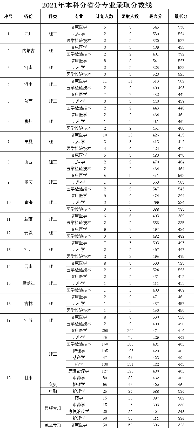 想要報(bào)考甘肅醫(yī)學(xué)院的同學(xué),都比較關(guān)注甘肅醫(yī)學(xué)院今年的錄取分?jǐn)?shù)線,那么,高考多少分可以上甘肅醫(yī)學(xué)院呢?甘肅醫(yī)學(xué)院歷年最低錄取分?jǐn)?shù)線是多少?下面為大家整理了甘肅醫(yī)學(xué)院錄取分?jǐn)?shù)線,希望對(duì)大家有所幫助,僅供參考。![]() 甘肅醫(yī)學(xué)院錄取分?jǐn)?shù)線 ![]() ![]() 甘肅醫(yī)學(xué)院是公辦還是民辦大學(xué)? 根據(jù)全國(guó)高等學(xué)校信息可知,甘肅醫(yī)學(xué)院是公辦大學(xué)。通常來(lái)說(shuō),公辦大學(xué)學(xué)費(fèi)便宜,民辦大學(xué)學(xué)費(fèi)較貴。 ![]() 甘肅醫(yī)學(xué)院簡(jiǎn)介 甘肅醫(yī)學(xué)院是一所具有悠久辦學(xué)歷史和優(yōu)良辦學(xué)傳統(tǒng)的全日制醫(yī)學(xué)普通本科院校,學(xué)院位于甘肅省平?jīng)鍪?,鐘靈毓秀的天下道教第一名山——崆峒山東麓,涇水河畔。 是經(jīng)國(guó)家教育部備案,甘肅省人民政府批準(zhǔn)成立的全日制醫(yī)學(xué)本科院校,前身是始建于1958年的甘肅省平?jīng)龅貐^(qū)衛(wèi)生,學(xué)校2003年升格為平?jīng)鲠t(yī)學(xué)高等專(zhuān)科學(xué)校,2015年經(jīng)教育部批準(zhǔn)升格為醫(yī)學(xué)本科院校。 通過(guò)對(duì)甘肅醫(yī)學(xué)院錄取分?jǐn)?shù)線的了解,大家大概知道了高考多少分可以上甘肅醫(yī)學(xué)院,以上數(shù)據(jù)源于網(wǎng)絡(luò),僅供參考,大家如果想要了解其他大學(xué)錄取分?jǐn)?shù)線、大學(xué)簡(jiǎn)介、大學(xué)排行榜、專(zhuān)業(yè)選擇等內(nèi)容,請(qǐng)點(diǎn)擊訪問(wèn):大學(xué)欄目。 推薦閱讀: 新疆大學(xué)錄取分?jǐn)?shù)線 西藏大學(xué)錄取分?jǐn)?shù)線 喀什大學(xué)錄取分?jǐn)?shù)線 石河子大學(xué)錄取分?jǐn)?shù)線 蘭州大學(xué)錄取分?jǐn)?shù)線 高考多少分可以上寧夏大學(xué)? 西北師范大學(xué)錄取分?jǐn)?shù)線 |