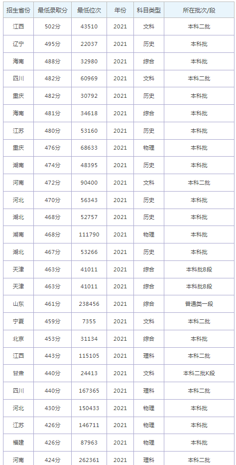 想要報考西安工商學院的同學,都比較關注西安工商學院今年的錄取分數(shù)線,那么,高考多少分可以上西安工商學院呢?西安工商學院歷年最低錄取分數(shù)線是多少? 下面為大家整理了西安工商學院錄取分數(shù)線,希望對大家有所幫助,僅供參考。![]() 2021西安工商學院錄取分數(shù)線 ![]() ![]() 西安工商學校是幾本? 西安工商學院是一所二本大學。 ![]() 西安工商學院簡介 西安工商學院(原西安工業(yè)大學北方信息工程學院)是經(jīng)教育部批準設立的,擁有學士學位授予權的本科層次民辦普通高等學校。校園位于八水繞長安的渭水之濱高陵區(qū),毗鄰著名歷史文化景區(qū)“涇渭分明”。校園建筑傳承關學文化余韻,深受長安八水的滋養(yǎng)。學校周邊交通便利,即將建成的地鐵十號線直達與學校毗鄰的高陵區(qū)水景公園站,學校配套設施完善,教育教學成果頗豐。 學校歷經(jīng)十幾載薪火相傳,銳意改革和創(chuàng)新,利用信息類專業(yè)優(yōu)勢,把信息技術、人工智能、設計與創(chuàng)意、藝術與經(jīng)濟、商業(yè)、金融等結(jié)合,培養(yǎng)具有“人文精神、國際視野、創(chuàng)意設計、商業(yè)策劃和技術技能”等一定跨界發(fā)展能力的高素質(zhì)應用型人才。 通過對西安工商學院錄取分數(shù)線的了解,大家大概知道了高考多少分可以上西安工商學院,以上數(shù)據(jù)源于網(wǎng)絡,僅供參考,大家如果想要了解其他大學錄取分數(shù) 線、大學簡介、大學排行榜、專業(yè)選擇等內(nèi)容,請點擊訪問:大學欄目。 推薦閱讀: 新疆大學錄取分數(shù)線 西藏大學錄取分數(shù)線 喀什大學錄取分數(shù)線 石河子大學錄取分數(shù)線 蘭州大學錄取分數(shù)線 高考多少分可以上寧夏大學? 西北師范大學錄取分數(shù)線 |