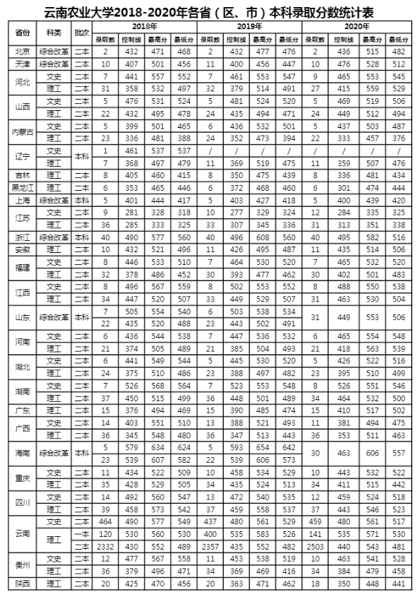 想要報(bào)考云南農(nóng)業(yè)大學(xué)的同學(xué),都比較關(guān)注云南農(nóng)業(yè)大學(xué)今年的錄取分?jǐn)?shù)線,那么,高考多少分可以上云南農(nóng)業(yè)大學(xué)呢?云南農(nóng)業(yè)大學(xué)歷年最低錄取分?jǐn)?shù)線是多少?下面為大家整理了云南農(nóng)業(yè)大學(xué)錄取分?jǐn)?shù)線,希望對(duì)大家有所幫助,僅供參考。![]() 2018-2020云南農(nóng)業(yè)大學(xué)錄取分?jǐn)?shù)線 ![]() ![]() 云南農(nóng)業(yè)大學(xué)是公辦還是民辦大學(xué)? 根據(jù)全國(guó)高等學(xué)校信息可知,云南農(nóng)業(yè)大學(xué)是公辦大學(xué)。通常來(lái)說(shuō),公辦大學(xué)學(xué)費(fèi)便宜,民辦大學(xué)學(xué)費(fèi)較貴。 ![]() 云南農(nóng)業(yè)大學(xué)簡(jiǎn)介 云南農(nóng)業(yè)大學(xué)(Yunnan Agricultural University,YAU),簡(jiǎn)稱“云農(nóng)大”,坐落在春城—云南省昆明市,為云南省屬重點(diǎn)大學(xué),入選國(guó)家卓越農(nóng)林人才教育培養(yǎng)計(jì)劃和卓越工程師教育培養(yǎng)計(jì)劃,是全國(guó)第二批深化創(chuàng)新創(chuàng)業(yè)教育改革示范高校、全國(guó)創(chuàng)新創(chuàng)業(yè)典型經(jīng)驗(yàn)高校、國(guó)家“2011計(jì)劃”建設(shè)單位、中國(guó)政府獎(jiǎng)學(xué)金來(lái)華留學(xué)生接收院校,具有研究生推免資格高校,擁有博士學(xué)位和碩士學(xué)位授予權(quán),設(shè)有中國(guó)-東盟教育培訓(xùn)中心。 云南農(nóng)業(yè)大學(xué)歷史可追溯到1907年創(chuàng)辦的云南農(nóng)業(yè)學(xué)堂,1938年國(guó)立云南大學(xué)農(nóng)學(xué)院創(chuàng)辦,建址昆明市呈貢縣;1958年獨(dú)立建成昆明農(nóng)林學(xué)院,遷址昆明北郊黑龍?zhí)丁?962年滇南大學(xué)、滇西大學(xué)并入昆明農(nóng)林學(xué)院,1969年搬遷至大理州賓川縣,1970年遷至原曲靖地區(qū)尋甸縣,1971年與云南農(nóng)業(yè)勞動(dòng)大學(xué)合并成立云南農(nóng)業(yè)大學(xué),1980年搬回昆明北郊黑龍?zhí)丁?004年,云南省建筑工程學(xué)校、云南省香料研究開(kāi)發(fā)中心并入云南農(nóng)業(yè)大學(xué)。2014年,云南熱帶作物職業(yè)學(xué)院并入云南農(nóng)業(yè)大學(xué)。 通過(guò)對(duì)云南農(nóng)業(yè)大學(xué)錄取分?jǐn)?shù)線的了解,大家大概知道了高考多少分可以上云南農(nóng)業(yè)大學(xué),以上數(shù)據(jù)源于網(wǎng)絡(luò),僅供參考,大家如果想要了解其他大學(xué)錄取分?jǐn)?shù)線、大學(xué)簡(jiǎn)介、大學(xué)排行榜、專業(yè)選擇等內(nèi)容,請(qǐng)點(diǎn)擊訪問(wèn):大學(xué)欄目。 推薦閱讀: 新疆大學(xué)錄取分?jǐn)?shù)線 西藏大學(xué)錄取分?jǐn)?shù)線 喀什大學(xué)錄取分?jǐn)?shù)線 石河子大學(xué)錄取分?jǐn)?shù)線 蘭州大學(xué)錄取分?jǐn)?shù)線 高考多少分可以上寧夏大學(xué)? 西北師范大學(xué)錄取分?jǐn)?shù)線 |