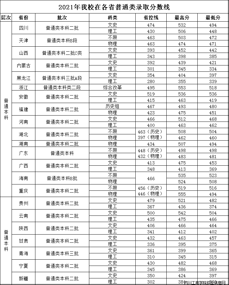想要報(bào)考四川工商學(xué)院的同學(xué),都比較關(guān)注四川工商學(xué)院2022年的錄取分?jǐn)?shù)線,那么,高考多少分可以上四川工商學(xué)院呢?四川工商學(xué)院歷年最低錄取分?jǐn)?shù)線是多少?下面為大家整理了四川工商學(xué)院錄取分?jǐn)?shù)線2022是多少分(含2021-2022歷年),希望對(duì)大家有所幫助,僅供參考。![]() 四川工商學(xué)院錄取分?jǐn)?shù)線2022是多少分? 截止到目前,四川工商學(xué)院2022年錄取分?jǐn)?shù)線還未公布,如果需要2022年四川工商學(xué)院分?jǐn)?shù)線的同學(xué),不妨參考2021年四川工商學(xué)院錄取分?jǐn)?shù)線和四川工商學(xué)院歷年錄取分?jǐn)?shù)線,希望對(duì)大家有所幫助,如有不同,請(qǐng)以四川工商學(xué)院官網(wǎng)最新公布的信息為準(zhǔn)。 2021四川工商學(xué)院錄取分?jǐn)?shù)線 ![]() ![]() ![]() 四川工商學(xué)院是幾本? 四川工商學(xué)院是二本院校,是一所公辦本科學(xué)校,在學(xué)校內(nèi)也開(kāi)設(shè)專科。 ![]() 四川工商學(xué)院簡(jiǎn)介 四川工商學(xué)院(Sichuan Technology and Business University),是由中華人民共和國(guó)教育部批準(zhǔn)成立的全日制普通本科高等學(xué)校。 學(xué)院前身是2001年由四川省錦虹科技教育開(kāi)發(fā)有限公司和四川師范大學(xué)聯(lián)合舉辦的四川師范大學(xué)電子信息工程學(xué)院;2004年經(jīng)教育部批準(zhǔn)設(shè)立為獨(dú)立學(xué)院四川師范大學(xué)成都學(xué)院;2015年4月經(jīng)教育部批準(zhǔn)轉(zhuǎn)設(shè)更名為四川工商學(xué)院。 通過(guò)對(duì)四川工商學(xué)院錄取分?jǐn)?shù)線的了解,大家大概知道了高考多少分可以上四川工商學(xué)院,以上數(shù)據(jù)源于網(wǎng)絡(luò),僅供參考,大家如果想要了解其他大學(xué)錄取分?jǐn)?shù)線、大學(xué)簡(jiǎn)介、大學(xué)排行榜、專業(yè)選擇等內(nèi)容,請(qǐng)點(diǎn)擊訪問(wèn):大學(xué)欄目。 推薦閱讀: 北京大學(xué)錄取分?jǐn)?shù)線 清華大學(xué)錄取分?jǐn)?shù)線 中國(guó)科學(xué)技術(shù)大學(xué)錄取分?jǐn)?shù)線 復(fù)旦大學(xué)錄取分?jǐn)?shù)線 南開(kāi)大學(xué)錄取分?jǐn)?shù)線 同濟(jì)大學(xué)錄取分?jǐn)?shù)線 |