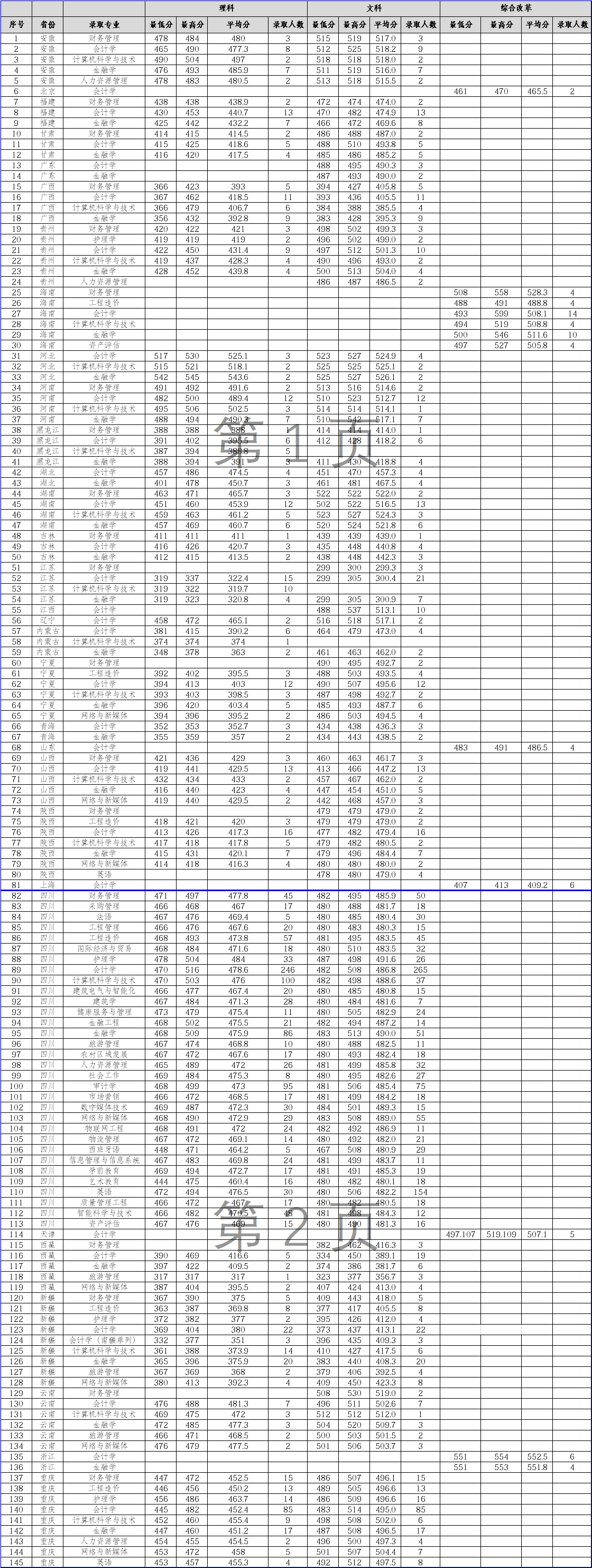 2020年普通本科分省分專業(yè)錄取分?jǐn)?shù)統(tǒng)計表