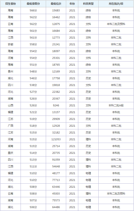 想要報考重慶三峽學院的同學,都比較關(guān)注重慶三峽學院2022年的錄取分數(shù)線,那么,高考多少分可以上重慶三峽學院呢?重慶三峽學院歷年最低錄取分數(shù)線是多少?下面為大家整理了重慶三峽學院錄取分數(shù)線2022是多少分(含2021-2022歷年),希望對大家有所幫助,僅供參考。![]() 重慶三峽學院錄取分數(shù)線2022是多少分? 截止到目前,重慶三峽學院2022年錄取分數(shù)線還未公布,如果需要2022年重慶三峽學院分數(shù)線的同學,不妨參考2021年重慶三峽學院錄取分數(shù)線和重慶三峽學院歷年錄取分數(shù)線,希望對大家有所幫助,如有不同,請以重慶三峽學院官網(wǎng)最新公布的信息為準。 2021重慶三峽學院錄取分數(shù)線 ![]() ![]() 重慶三峽學院是公辦還是民辦大學? 根據(jù)全國高等學校信息可知,重慶三峽學院是公辦大學。通常來說,公辦大學社會認可度高,各專業(yè)學費較便宜,民辦大學各專業(yè)收費較貴。 ![]() 重慶三峽學院簡介 重慶三峽學院(Chongqing Three Gorges University)坐落于重慶市萬州區(qū),由重慶市人民政府舉辦,以文、工為主的全日制普通本科院校,入選首批“卓越農(nóng)林人才教育培養(yǎng)計劃”、教育部數(shù)據(jù)中國“百校工程”、“重慶市2011協(xié)同創(chuàng)新中心”,全國高校校園網(wǎng)站聯(lián)盟理事單位,“一帶一路”標準化教育與研究大學聯(lián)盟成員,是山東大學對口支援高校。 重慶三峽學院創(chuàng)建于1956年,其前身為四川省萬縣初中師資訓(xùn)練班,先后更名為萬縣大學、萬縣??茖W校、萬縣師范專科學校。1994年,萬縣師范??茖W校與萬縣教育學院合并成立四川三峽學院,并升格為本科院校。2000年,學校更名為重慶三峽學院。2003年,重慶三峽經(jīng)濟學校并入。2013年,學校被批準為碩士學位授予單位。 通過對重慶三峽學院錄取分數(shù)線的了解,大家大概知道了高考多少分可以上重慶三峽學院,以上數(shù)據(jù)源于網(wǎng)絡(luò),僅供參考,大家如果想要了解其他大學錄取分數(shù)線、大學簡介、大學排行榜、專業(yè)選擇等內(nèi)容,請點擊訪問:大學欄目。 推薦閱讀: 北京大學錄取分數(shù)線 清華大學錄取分數(shù)線 中國科學技術(shù)大學錄取分數(shù)線 復(fù)旦大學錄取分數(shù)線 南開大學錄取分數(shù)線 同濟大學錄取分數(shù)線 |