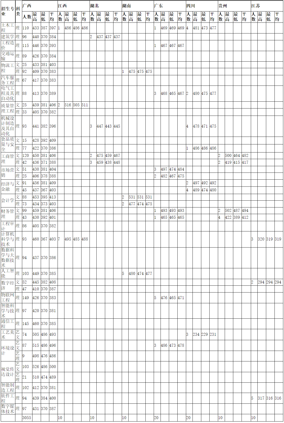 2020年本科錄取分數(shù)(廣西、江西、廣東、湖南、湖北、貴州、四川、江蘇)