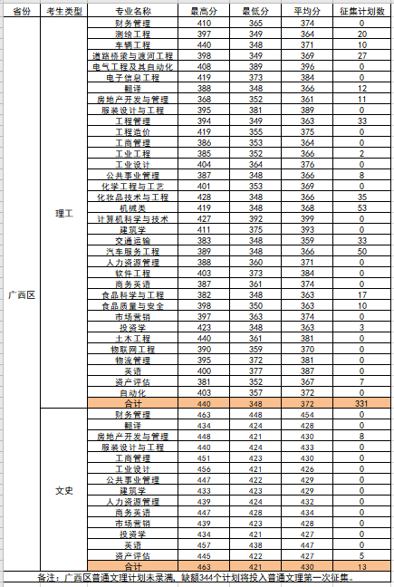 柳州工學(xué)院2021年廣西區(qū)普通文理第一次投檔情況