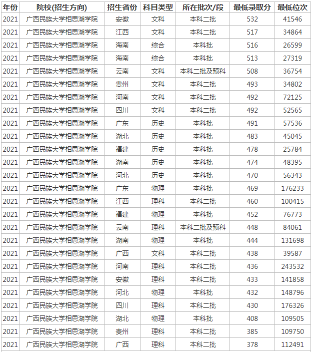 想要報考廣西民族大學相思湖學院的同學,都比較關注廣西民族大學相思湖學院2022年的錄取分數(shù)線,那么,高考多少分可以上廣西民族大學相思湖學院呢?廣西民族大學相思湖學院歷年最低錄取分數(shù) 線是多少?下面為大家整理了廣西民族大學相思湖學院錄取分數(shù)線2022是多少分(含2021-2022歷年),希望對大家有所幫助,僅供參考。![]() 廣西民族大學相思湖學院錄取分數(shù)線2022是多少分? 截止到目前,廣西民族大學相思湖學院2022年錄取分數(shù)線還未公布,如果需要2022年廣西民族大學相思湖學院分數(shù)線的同學,不妨參考 2021年廣西民族大學相思湖學院錄取分數(shù)線和廣西民族大學相思湖學院歷年錄取分數(shù)線,希望對大家有所幫助,如有不同,請以廣西民族大學相思湖學院官網最新公布的信息為準。 2021廣西民族大學相思湖學院錄取分數(shù)線 ![]() ![]() 廣西民族大學相思湖學院是985還是211大學? 根據全國985和211大學名單可知:廣西民族大學相思湖學院既不是985大學,也不是211大學。 ![]() 廣西民族大學相思湖學院簡介 廣西民族大學相思湖學院(Xiangsihu College of GuangXi University for Nationalities),簡稱相思湖學院,是教育部確認的獨立學院,是實施本科學歷教育的全日制普通高等學校。 學院創(chuàng)建于2002年4月,原名為廣西民族學院相思湖學院,2004年2月,經教育部批準,成為全日制本科普通高校(獨立學院),2006年3月,教育部同意廣西民族學院相思湖學院更名為廣西民族大學相思湖學院。 通過對廣西民族大學相思湖學院錄取分數(shù)線的了解,大家大概知道了高考多少分可以上廣西民族大學相思湖學院,以上數(shù)據源于網絡,僅供參考,大家如果想要了解其他大學錄取 分數(shù)線、大學簡介、大學排行榜、專業(yè)選擇等內容,請點擊訪問:大學欄目。 推薦閱讀: 西安交通大學錄取分數(shù)線 浙江大學錄取分數(shù)線 中國農業(yè)大學錄取分數(shù)線 哈爾濱工業(yè)大學錄取分數(shù)線 北京師范大學錄取分數(shù)線 中央民族大學錄取分數(shù)線 |