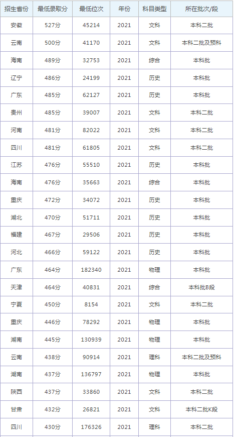 想要報(bào)考湖南涉外經(jīng)濟(jì)學(xué)院的同學(xué),都比較關(guān)注湖南涉外經(jīng)濟(jì)學(xué)院2022年的錄取分?jǐn)?shù)線,那么,高考多少分可以上湖南涉外經(jīng)濟(jì)學(xué)院呢?湖南涉外經(jīng)濟(jì)學(xué)院歷年最低錄取分?jǐn)?shù)線是多少?下面為大家整理了湖南涉外經(jīng)濟(jì)學(xué)院錄取分?jǐn)?shù)線2022是多少分(含2021-2022歷年),希望對(duì)大家有所幫助,僅供參考。![]() 湖南涉外經(jīng)濟(jì)學(xué)院錄取分?jǐn)?shù)線2022是多少分? 截止到目前,湖南涉外經(jīng)濟(jì)學(xué)院2022年錄取分?jǐn)?shù)線還未公布,如果需要2022年湖南涉外經(jīng)濟(jì)學(xué)院分?jǐn)?shù)線的同學(xué),不妨參考2021年湖南涉外經(jīng)濟(jì)學(xué)院錄取分?jǐn)?shù)線和湖南涉外經(jīng)濟(jì)學(xué)院歷年錄取分?jǐn)?shù)線,希望對(duì)大家有所幫助,如有不同,請(qǐng)以湖南涉外經(jīng)濟(jì)學(xué)院官網(wǎng)最新公布的信息為準(zhǔn)。 2021湖南涉外經(jīng)濟(jì)學(xué)院錄取分?jǐn)?shù)線 ![]() ![]() 湖南涉外經(jīng)濟(jì)學(xué)院是幾本? 湖南涉外經(jīng)濟(jì)學(xué)院是二本。湖南涉外經(jīng)濟(jì)學(xué)院在湖南是第二批次招生。湖南涉外經(jīng)濟(jì)學(xué)院是經(jīng)國(guó)家教育部批準(zhǔn)成立的民辦普通本科院校。 ![]() 湖南涉外經(jīng)濟(jì)學(xué)院簡(jiǎn)介 湖南涉外經(jīng)濟(jì)學(xué)院(Hunan International Economics University)坐落于湖南省長(zhǎng)沙市,是經(jīng)國(guó)家教育部批準(zhǔn)成立的民辦普通本科院校。 學(xué)院前身為創(chuàng)建于1997年湘南文理專修學(xué)院,于1998年更名為湖南涉外經(jīng)濟(jì)學(xué)院。2005年,經(jīng)國(guó)家教育部和湖南省人民政府批準(zhǔn),學(xué)院升格為本科院校。 通過(guò)對(duì)湖南涉外經(jīng)濟(jì)學(xué)院錄取分?jǐn)?shù)線的了解,大家大概知道了高考多少分可以上湖南涉外經(jīng)濟(jì)學(xué)院,以上數(shù)據(jù)源于網(wǎng)絡(luò),僅供參考,大家如果想要了解其他大學(xué)錄取分?jǐn)?shù)線、大學(xué)簡(jiǎn)介、大學(xué)排行榜、專業(yè)選擇等內(nèi)容,請(qǐng)點(diǎn)擊訪問(wèn):大學(xué)欄目。 推薦閱讀: 北京大學(xué)錄取分?jǐn)?shù)線 清華大學(xué)錄取分?jǐn)?shù)線 中國(guó)科學(xué)技術(shù)大學(xué)錄取分?jǐn)?shù)線 復(fù)旦大學(xué)錄取分?jǐn)?shù)線 南開(kāi)大學(xué)錄取分?jǐn)?shù)線 同濟(jì)大學(xué)錄取分?jǐn)?shù)線 |