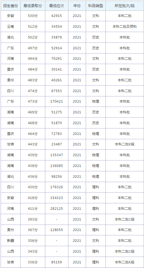 想要報(bào)考湖南應(yīng)用技術(shù)學(xué)院的同學(xué),都比較關(guān)注湖南應(yīng)用技術(shù)學(xué)院2022年的錄取分?jǐn)?shù)線,那么,高考多少分可以上湖南應(yīng)用技術(shù)學(xué)院呢?湖南應(yīng)用技術(shù)學(xué)院歷年最低錄取分?jǐn)?shù)線是多少?下面為大家整理了湖南應(yīng)用技術(shù)學(xué)院錄取分?jǐn)?shù)線2022是多少分(含2021-2022歷年),希望對大家有所幫助,僅供參考。![]() 湖南應(yīng)用技術(shù)學(xué)院錄取分?jǐn)?shù)線2022是多少分? 截止到目前,湖南應(yīng)用技術(shù)學(xué)院2022年錄取分?jǐn)?shù)線還未公布,如果需要2022年湖南應(yīng)用技術(shù)學(xué)院分?jǐn)?shù)線的同學(xué),不妨參考2021年湖南應(yīng)用技術(shù)學(xué)院錄取分?jǐn)?shù)線和湖南應(yīng)用技術(shù)學(xué)院歷年錄取分?jǐn)?shù)線,希望對大家有所幫助,如有不同,請以湖南應(yīng)用技術(shù)學(xué)院官網(wǎng)最新公布的信息為準(zhǔn)。 2021湖南應(yīng)用技術(shù)學(xué)院錄取分?jǐn)?shù)線 ![]() ![]() 湖南應(yīng)用技術(shù)學(xué)院是幾本? 湖南應(yīng)用技術(shù)學(xué)院是二本學(xué)校。 ![]() 湖南應(yīng)用技術(shù)學(xué)院簡介 湖南應(yīng)用技術(shù)學(xué)院(Hunan Applied Technology University),簡稱“湖應(yīng)”,坐落在湖南省常德市,是經(jīng)國家教育部批準(zhǔn)的一所全日制普通高等本科院校。 學(xué)校創(chuàng)建于1994年的常德電腦技術(shù)學(xué)校;1998年更名為常德電腦專修大學(xué);2004年升格為湖南同德職業(yè)學(xué)院;2014年升格為普通本科院校,更名為湖南應(yīng)用技術(shù)學(xué)院。 通過對湖南應(yīng)用技術(shù)學(xué)院錄取分?jǐn)?shù)線的了解,大家大概知道了高考多少分可以上湖南應(yīng)用技術(shù)學(xué)院,以上數(shù)據(jù)源于網(wǎng)絡(luò),僅供參考,大家如果想要了解其他大學(xué)錄取分?jǐn)?shù)線、大學(xué)簡介、大學(xué)排行榜、專業(yè)選擇等內(nèi)容,請點(diǎn)擊訪問:大學(xué)欄目。 推薦閱讀: 西安交通大學(xué)錄取分?jǐn)?shù)線 浙江大學(xué)錄取分?jǐn)?shù)線 中國農(nóng)業(yè)大學(xué)錄取分?jǐn)?shù)線 哈爾濱工業(yè)大學(xué)錄取分?jǐn)?shù)線 北京師范大學(xué)錄取分?jǐn)?shù)線 中央民族大學(xué)錄取分?jǐn)?shù)線 |