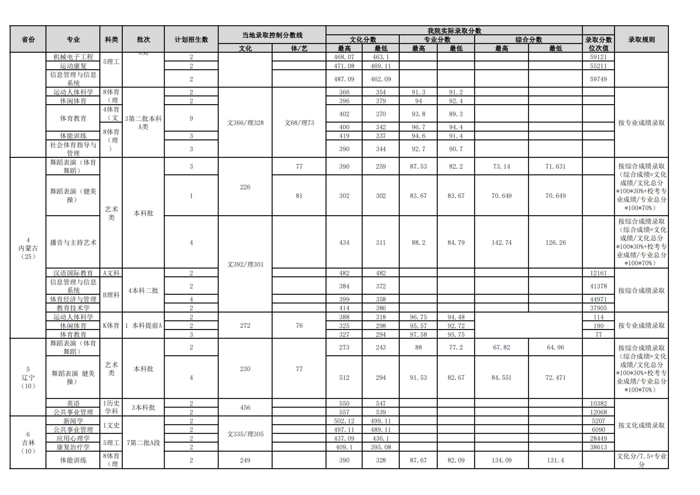 想要報(bào)考武漢體育學(xué)院的同學(xué),都比較關(guān)注武漢體育學(xué)院2022年的錄取分?jǐn)?shù)線,那么,高考多少分可以上武漢體育學(xué)院呢?武漢體育學(xué)院歷年最低錄取分?jǐn)?shù)線是多少?下面為大家整理了武漢體育學(xué)院錄取分?jǐn)?shù)線2022是多少分(含2021-2022歷年),希望對(duì)大家有所幫助,僅供參考。![]() 武漢體育學(xué)院錄取分?jǐn)?shù)線2022是多少分? 截止到目前,武漢體育學(xué)院2022年錄取分?jǐn)?shù)線還未公布,如果需要2022年武漢體育學(xué)院分?jǐn)?shù)線的同學(xué),不妨參考2021年武漢體育學(xué)院錄取分?jǐn)?shù)線和武漢體育學(xué)院歷年錄取分?jǐn)?shù)線,希望對(duì)大家有所幫助,如有不同,請(qǐng)以武漢體育學(xué)院官網(wǎng)最新公布的信息為準(zhǔn)。 2021武漢體育學(xué)院錄取分?jǐn)?shù)線 ![]() ![]() ![]() 武漢體育學(xué)院是公辦還是民辦大學(xué)? 根據(jù)全國(guó)高等學(xué)校信息可知,武漢體育學(xué)院是公辦大學(xué)。通常來(lái)說(shuō),公辦大學(xué)社會(huì)認(rèn)可度高,各專(zhuān)業(yè)學(xué)費(fèi)較便宜,民辦大學(xué)各專(zhuān)業(yè)收費(fèi)較貴。 ![]() 武漢體育學(xué)院簡(jiǎn)介 武漢體育學(xué)院(WUHAN SPORTS UNIVERSITY)簡(jiǎn)稱(chēng)“武漢體院”,位于湖北省會(huì)武漢,是新中國(guó)首批獨(dú)立設(shè)置的全日制普通高等體育院校之一,“湖北省2011計(jì)劃”牽頭高校。 武漢體育學(xué)院原名中南體育學(xué)院,1953年組建于江西南昌,1955年遷至湖北省武漢市,1956年更名為武漢體育學(xué)院。武漢體育學(xué)院原為國(guó)家體育總局直屬體育院校,2001年學(xué)校管理體制改革,成為國(guó)家體育總局與湖北省共建院校。 通過(guò)對(duì)武漢體育學(xué)院錄取分?jǐn)?shù)線的了解,大家大概知道了高考多少分可以上武漢體育學(xué)院,以上數(shù)據(jù)源于網(wǎng)絡(luò),僅供參考,大家如果想要了解其他大學(xué)錄取分?jǐn)?shù)線、大學(xué)簡(jiǎn)介、大學(xué)排行榜、專(zhuān)業(yè)選擇等內(nèi)容,請(qǐng)點(diǎn)擊訪問(wèn):大學(xué)欄目。 推薦閱讀: 西安交通大學(xué)錄取分?jǐn)?shù)線 浙江大學(xué)錄取分?jǐn)?shù)線 中國(guó)農(nóng)業(yè)大學(xué)錄取分?jǐn)?shù)線 哈爾濱工業(yè)大學(xué)錄取分?jǐn)?shù)線 北京師范大學(xué)錄取分?jǐn)?shù)線 中央民族大學(xué)錄取分?jǐn)?shù)線 |