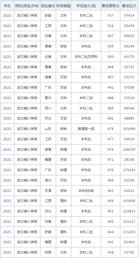想要報(bào)考武漢晴川學(xué)院的同學(xué),都比較關(guān)注武漢晴川學(xué)院2022年的錄取分?jǐn)?shù)線,那么,高考多少分可以上武漢晴川學(xué)院呢?武漢晴川學(xué)院歷年最低錄取分?jǐn)?shù)線是多少?下面為大家整理了武漢晴川學(xué)院錄取分?jǐn)?shù)線2022是多少分(含2021-2022歷年),希望對(duì)大家有所幫助,僅供參考。![]() 武漢晴川學(xué)院錄取分?jǐn)?shù)線2022是多少分? 截止到目前,武漢晴川學(xué)院2022年錄取分?jǐn)?shù)線還未公布,如果需要2022年武漢晴川學(xué)院分?jǐn)?shù)線的同學(xué),不妨參考2021年武漢晴川學(xué)院錄取分?jǐn)?shù)線和武漢晴川學(xué)院歷年錄取分?jǐn)?shù)線,希望對(duì)大家有所幫助,如有不同,請(qǐng)以武漢晴川學(xué)院官網(wǎng)最新公布的信息為準(zhǔn)。 2021武漢晴川學(xué)院錄取分?jǐn)?shù)線 ![]() ![]() 武漢晴川學(xué)院是985還是211大學(xué)? 根據(jù)全國(guó)985和211大學(xué)名單可知:武漢晴川學(xué)院不是985大學(xué),也不是211大學(xué)。 ![]() 武漢晴川學(xué)院簡(jiǎn)介 武漢晴川學(xué)院(Wuhan Qingchuan University)位于湖北武漢,是經(jīng)教育部批準(zhǔn)設(shè)立的普通本科高校,為湖北省轉(zhuǎn)型發(fā)展試點(diǎn)本科高校、教育部辦學(xué)條件評(píng)估驗(yàn)收合格高校。 學(xué)院的前身為2006年4月創(chuàng)辦的武漢大學(xué)珞珈學(xué)院。2016年4月,學(xué)校更名為“武漢晴川學(xué)院”。 通過對(duì)武漢晴川學(xué)院錄取分?jǐn)?shù)線的了解,大家大概知道了高考多少分可以上武漢晴川學(xué)院,以上數(shù)據(jù)源于網(wǎng)絡(luò),僅供參考,大家如果想要了解其他大學(xué)錄取分?jǐn)?shù)線、大學(xué)簡(jiǎn)介、大學(xué)排行榜、專業(yè)選擇等內(nèi)容,請(qǐng)點(diǎn)擊訪問:大學(xué)欄目。 推薦閱讀: 西安交通大學(xué)錄取分?jǐn)?shù)線 浙江大學(xué)錄取分?jǐn)?shù)線 中國(guó)農(nóng)業(yè)大學(xué)錄取分?jǐn)?shù)線 哈爾濱工業(yè)大學(xué)錄取分?jǐn)?shù)線 北京師范大學(xué)錄取分?jǐn)?shù)線 中央民族大學(xué)錄取分?jǐn)?shù)線 |