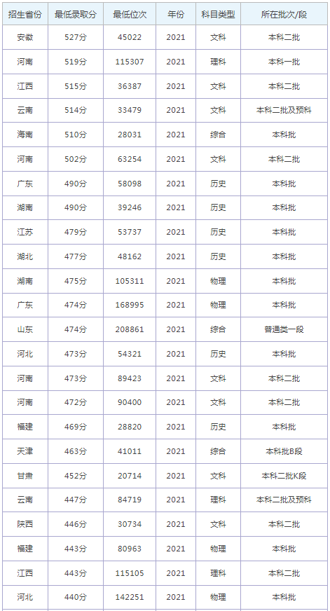 想要報考黃河科技學院的同學,都比較關注黃河科技學院2022年的錄取分數(shù)線,那么,高考多少分可以上黃河科技學院呢?黃河科技學院歷年最低錄取分數(shù)線是多少?下面為大家整理了黃河科技學院錄取分數(shù)線2022是多少分(含2021-2022歷年),希望對大家有所幫助,僅供參考。![]() 黃河科技學院錄取分數(shù)線2022是多少分? 截止到目前,黃河科技學院2022年錄取分數(shù)線還未公布,如果需要2022年黃河科技學院分數(shù)線的同學,不妨參考2021年黃河科技學院錄取分數(shù)線和黃河科技學院歷年錄取分數(shù)線,希望對大家有所幫助,如有不同,請以黃河科技學院官網(wǎng)最新公布的信息為準。 2021黃河科技學院錄取分數(shù)線 ![]() ![]() 黃河科技學院是公辦還是民辦大學? 根據(jù)全國高等學校信息可知,黃河科技學院是民辦大學。通常來說,公辦大學社會認可度高,各專業(yè)學費較便宜,民辦大學各專業(yè)收費較貴。 ![]() 黃河科技學院簡介 黃河科技學院(Huanghe S & T University)位于河南省會鄭州,創(chuàng)辦于1984年,是經(jīng)教育部批準成立的一所民辦普通本科高校,全國畢業(yè)生就業(yè)典型經(jīng)驗高校。1994年成為第一個經(jīng)國家教委批準實施??茖W歷教育的民辦高校,2000年成為第一個經(jīng)教育部批準實施本科學歷教育的民辦高校;2004年取得學士學位授予權;2008年通過教育部普通高等學校本科教學工作水平評估;2013年被教育部批準為全國首批“應用科技大學改革試點戰(zhàn)略研究單位”,并成為河南省首批轉型發(fā)展試點高校;2014年,學校教改成果“民辦高校應用型人才培養(yǎng)模式創(chuàng)新與實踐”獲得國家級教學成果二等獎;學校被評為“全國畢業(yè)生就業(yè)典型經(jīng)驗高校”。 位居武書連2017中國民辦大學自然科學排行榜第一名,2017《廣州日報》全國民辦應用型大學排行榜第一名。 通過對黃河科技學院錄取分數(shù)線的了解,大家大概知道了高考多少分可以上黃河科技學院,以上數(shù)據(jù)源于網(wǎng)絡,僅供參考,大家如果想要了解其他大學錄取分數(shù)線、大學簡介、大學排行榜、專業(yè)選擇等內容,請點擊訪問:大學欄目。 推薦閱讀: 北京大學錄取分數(shù)線 清華大學錄取分數(shù)線 中國科學技術大學錄取分數(shù)線 復旦大學錄取分數(shù)線 南開大學錄取分數(shù)線 同濟大學錄取分數(shù)線 |