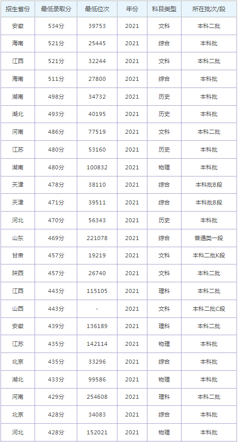 想要報考鄭州工商學(xué)院的同學(xué),都比較關(guān)注鄭州工商學(xué)院2022年的錄取分數(shù)線,那么,高考多少分可以上鄭州工商學(xué)院呢?鄭州工商學(xué)院歷年最低錄取分數(shù) 線是多少?下面為大家整理了鄭州工商學(xué)院錄取分數(shù)線2022是多少分(含2021-2022歷年),希望對大家有所幫助,僅供參考。![]() 鄭州工商學(xué)院錄取分數(shù)線2022是多少分? 截止到目前,鄭州工商學(xué)院2022年錄取分數(shù)線還未公布,如果需要2022年鄭州工商學(xué)院分數(shù)線的同學(xué),不妨參考 2021年鄭州工商學(xué)院錄取分數(shù)線和鄭州工商學(xué)院歷年錄取分數(shù)線,希望對大家有所幫助,如有不同,請以鄭州工商學(xué)院官網(wǎng)最新公布的信息為準。 2021鄭州工商學(xué)院錄取分數(shù)線 ![]() ![]() 鄭州工商學(xué)院是985還是211大學(xué)? 根據(jù)全國985和211大學(xué)名單可知:鄭州工商學(xué)院不是985大學(xué),也不是211大學(xué)。 ![]() 鄭州工商學(xué)院簡介 鄭州工商學(xué)院(Zhengzhou Technology and Business University),位于河南省鄭州市,是經(jīng)教育部批準設(shè)立的一所全日制民辦普通本科院校。 學(xué)校始建于2002年,前身為河南理工大學(xué)萬方科技學(xué)院,是河南理工大學(xué)按照新模式,吸納社會資本所建立的獨立學(xué)院,在焦作原河南理工大學(xué)北校區(qū)辦學(xué)。2009年于鄭州新區(qū)職教園區(qū)設(shè)立鄭州校區(qū),自此學(xué)院分為鄭州、焦作兩個校區(qū)同時辦學(xué);2016年經(jīng)教育部批準,由獨立學(xué)院轉(zhuǎn)設(shè)為民辦高校,轉(zhuǎn)設(shè)期間學(xué)生學(xué)籍按“新人新辦法、老人老辦法”政策執(zhí)行。原“河南理工大學(xué)萬方科技學(xué)院(焦作校區(qū))”改回“河南理工大學(xué)北校區(qū)”名稱。 通過對鄭州工商學(xué)院錄取分數(shù)線的了解,大家大概知道了高考多少分可以上鄭州工商學(xué)院,以上數(shù)據(jù)源于網(wǎng)絡(luò),僅供參考,大家如果想要了解其他大學(xué)錄取 分數(shù)線、大學(xué)簡介、大學(xué)排行榜、專業(yè)選擇等內(nèi)容,請點擊訪問:大學(xué)欄目。 推薦閱讀: 北京大學(xué)錄取分數(shù)線 清華大學(xué)錄取分數(shù)線 中國科學(xué)技術(shù)大學(xué)錄取分數(shù)線 復(fù)旦大學(xué)錄取分數(shù)線 南開大學(xué)錄取分數(shù)線 同濟大學(xué)錄取分數(shù)線 |