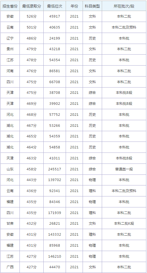想要報考青島濱海學(xué)院的同學(xué),都比較關(guān)注青島濱海學(xué)院2022年的錄取分?jǐn)?shù)線,那么,高考多少分可以上青島濱海學(xué)院呢?青島濱海學(xué)院歷年最低錄取分?jǐn)?shù)線是多少?下面為大家整理了青島濱海學(xué)院錄取分?jǐn)?shù)線2022是多少分(含2021-2022歷年),希望對大家有所幫助,僅供參考。![]() 青島濱海學(xué)院錄取分?jǐn)?shù)線2022是多少分? 截止到目前,青島濱海學(xué)院2022年錄取分?jǐn)?shù)線還未公布,如果需要2022年青島濱海學(xué)院分?jǐn)?shù)線的同學(xué),不妨參考2021年青島濱海學(xué)院錄取分?jǐn)?shù)線和青島濱海學(xué)院歷年錄取分?jǐn)?shù)線,希望對大家有所幫助,如有不同,請以青島濱海學(xué)院官網(wǎng)最新公布的信息為準(zhǔn)。 2021青島濱海學(xué)院錄取分?jǐn)?shù)線 ![]() ![]() 青島濱海學(xué)院是985還是211大學(xué)? 根據(jù)全國985和211大學(xué)名單可知:青島濱海學(xué)院不是985大學(xué),也不是211大學(xué)。 ![]() 青島濱海學(xué)院簡介 青島濱海學(xué)院(Qingdao Binhai University)是山東省首批民辦本科高等教育特色名校建設(shè)高校和山東省民辦高校優(yōu)質(zhì)特色發(fā)展項(xiàng)目支持計劃高校,全國十大最具影響力民辦大學(xué)、中國民辦高等教育優(yōu)秀院校、中國十大品牌民辦高校、教育部應(yīng)用技術(shù)大學(xué)戰(zhàn)略研究改革試點(diǎn)院校。 青島濱海學(xué)院的前身是創(chuàng)建于1992年9月的青島經(jīng)濟(jì)技術(shù)開發(fā)區(qū)自立職業(yè)高等中學(xué),先后更名為私立青島經(jīng)濟(jì)技術(shù)開發(fā)區(qū)職業(yè)中等院校、私立青島遠(yuǎn)東職業(yè)技術(shù)專修學(xué)院、民辦青島遠(yuǎn)東職業(yè)技術(shù)學(xué)院、民辦青島濱海職業(yè)學(xué)院,2005年3月成立青島濱海學(xué)院。 通過對青島濱海學(xué)院錄取分?jǐn)?shù)線的了解,大家大概知道了高考多少分可以上青島濱海學(xué)院,以上數(shù)據(jù)源于網(wǎng)絡(luò),僅供參考,大家如果想要了解其他大學(xué)錄取分?jǐn)?shù)線、大學(xué)簡介、大學(xué)排行榜、專業(yè)選擇等內(nèi)容,請點(diǎn)擊訪問:大學(xué)欄目。 推薦閱讀: 西安交通大學(xué)錄取分?jǐn)?shù)線 浙江大學(xué)錄取分?jǐn)?shù)線 中國農(nóng)業(yè)大學(xué)錄取分?jǐn)?shù)線 哈爾濱工業(yè)大學(xué)錄取分?jǐn)?shù)線 北京師范大學(xué)錄取分?jǐn)?shù)線 中央民族大學(xué)錄取分?jǐn)?shù)線 |