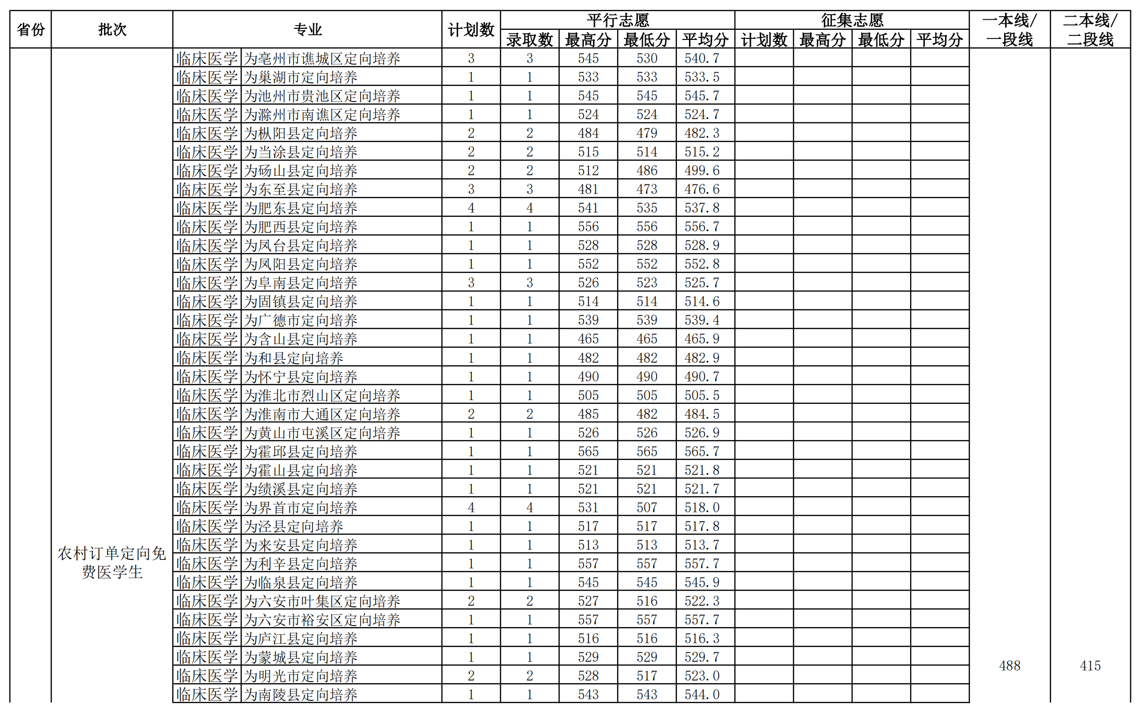 2021年安徽醫(yī)科大學(xué)分省分專業(yè)錄取分?jǐn)?shù)線