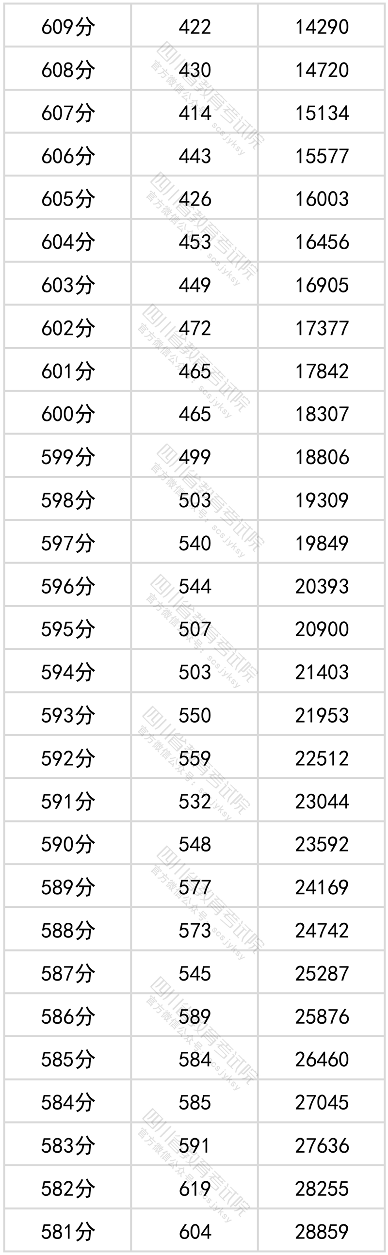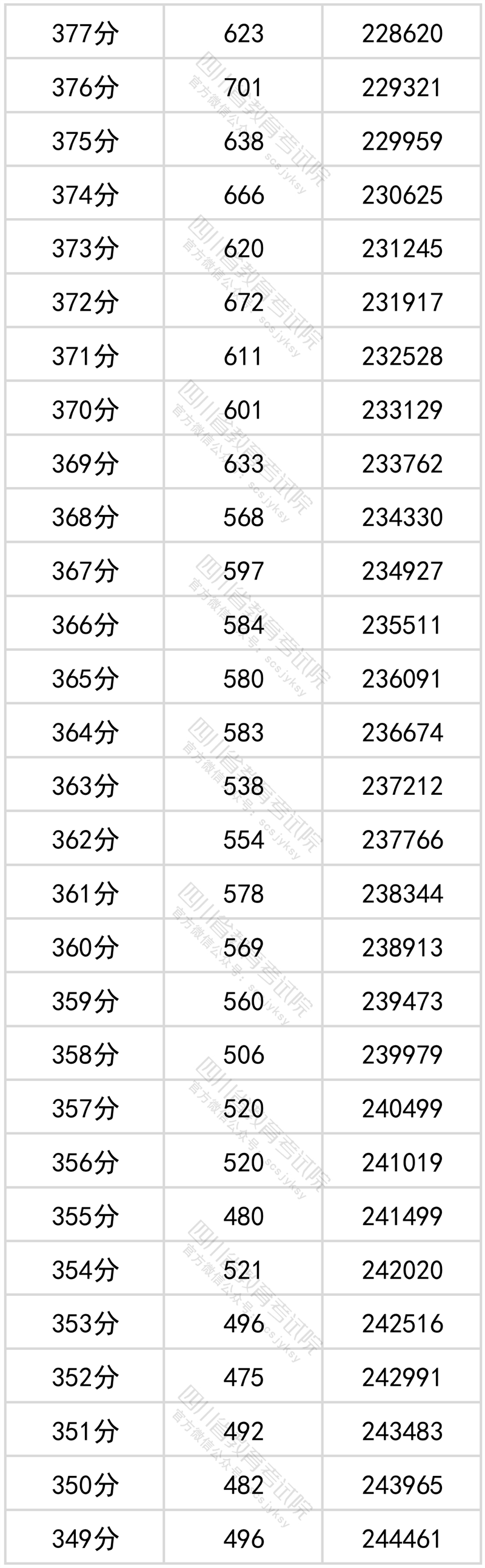 為了幫助大家全面了解2022年四川高考成績(jī)排名情況,下面我們?yōu)榇蠹艺砹?strong>2022年四川高考一分一段表,這樣,大家就能對(duì)自己2022的高考成績(jī)有更直觀的了解,知道自己高考成績(jī)排名是怎樣的?在四川處于什么位置,為接下來(lái)的志愿填報(bào)做到心里有數(shù)。![]() 點(diǎn)擊下一頁(yè),了解2021年四川高考一分一段表 2022年四川高考一分一段表